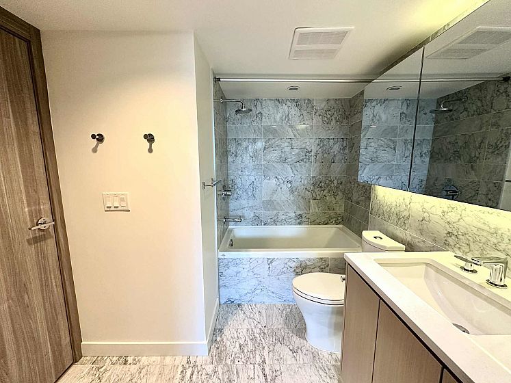 Immaculate Condition 1 Bed + Den at W1 by Concord! This rare 577sf West-facing home features A/C, floor-to-ceiling windows, spacious kitchen w/ island, dining & living areas, Miele appliances, and large den ideal for office/storage. Comes w/ 1 parking & 1 locker. Top Tier Amenities: 24hr concierge, gym, touchless car wash, karaoke, card/game room, tutor & meeting rooms. Steps to Marine Gateway, T&T, Cineplex, banks, SkyTrain & more!