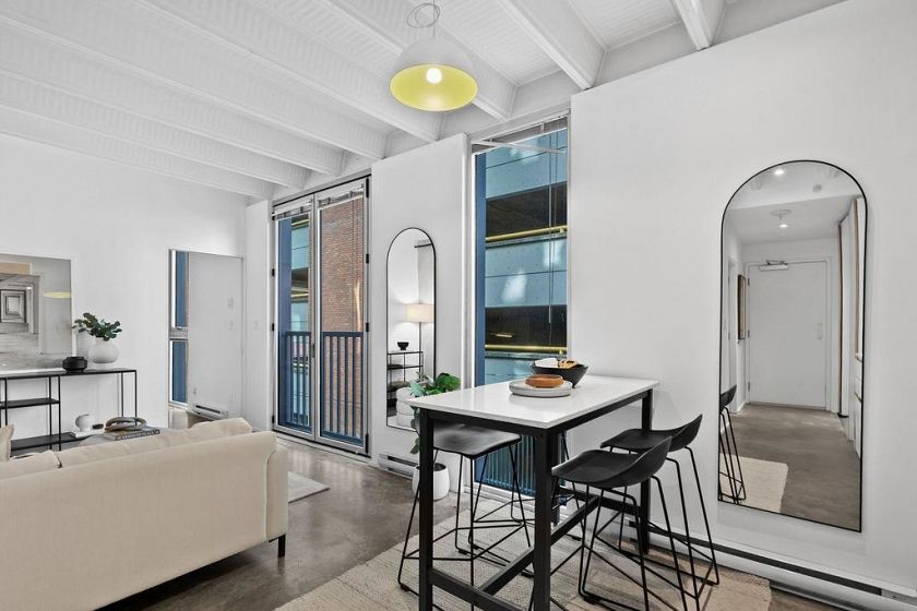 Unique loft-style 1-bedroom in a cool concrete boutique building in Chinatown. This west-facing unit features floor-to-ceiling bi-fold glass doors with Juliet balcony, polished concrete floors, higher ceilings, and a clean industrial aesthetic. The kitchen is outfitted with Fisher & Paykel appliances and a Blomberg fridge. Bonus: brand new bathroom tile, vanity, and upgrades to kitchen cabinetry. External storage locker included. Built by Panther Group with design by Birmingham & Wood. Residents enjoy a fantastic rooftop patio with mountain views and an outdoor kitchen. Steps to some of the city’s best restaurants, cafés, and markets. 1 storage locker included. No parking, but can be rented nearby on Keefer St.