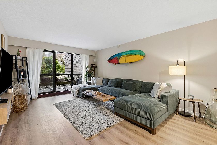 Proudly presenting this beautifully updated, spacious, & private 1 bed & den home in vibrant Lower Lonsdale. Sprawling over 800sf, this ground-level home features new light oak wide-plank floors, true dining space w/ custom bench seating, & generous living area w/ access to your peaceful & private terrace ideal for morning coffee or Summer BBQ. Perennial renovated kitchen offers top rate S/S appliances, stylish hex tiling, large basin sink, & beautiful stone countertops. An oversized, cozy bedroom pairs beautifully w/ a spa-inspired bathroom offering floor-to-ceiling tile & a relaxing rain shower. Den & extra closets allow for a home office or plenty of additional storage. 1 parking 1 locker. Well run strata situated on a quiet street minutes from Lonsdale Quay. A must see!