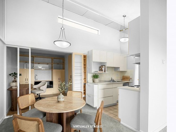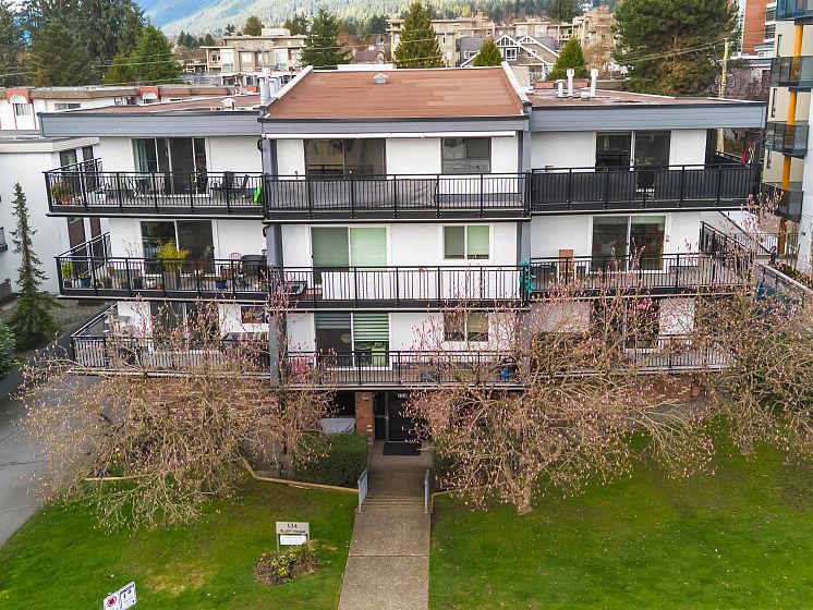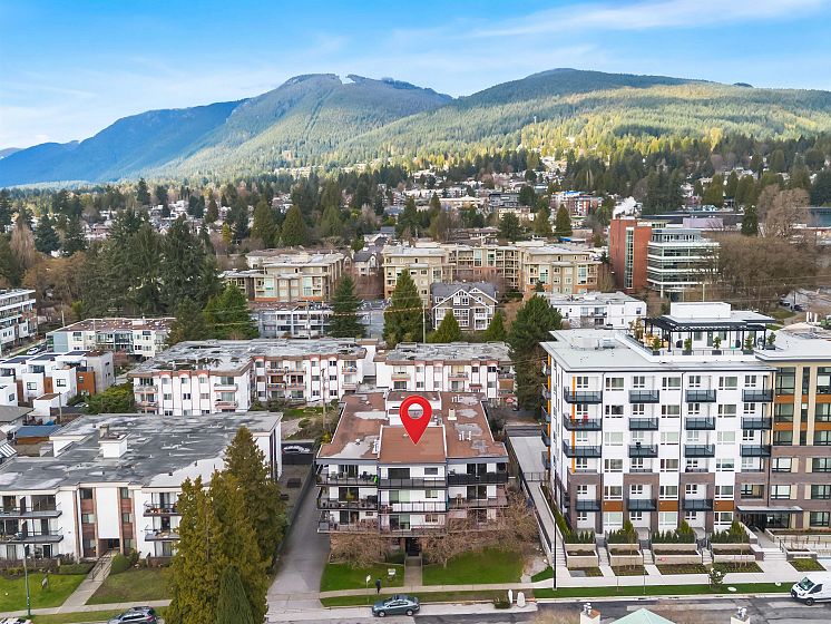 Don't miss out on this truly unique, 831 sq ft 1BR + Den in Central Lonsdale. This top floor condo has great potential with vaulted ceilings, cedar woodwork, gas fireplace and a large den for the perfect home office or even a guest bedroom. Facing a quiet street, the south facing balcony is great for both coffee at sunrise or a glass of wine at sunset and features electric roller blinds. This home feels like a loft space, with lots of living area and light from the vaulted window. The large bedroom features a walkthrough closet to an ensuite bathroom. This well-run building has many upgrades: balconies, windows, electrical, plumbing. Steps away from all Central Lonsdale shops, medical, new Harry Jerome and Hwy 1. With insuite walk-in storage, 1 parking, 1 locker, pet ok (dog 99lb).