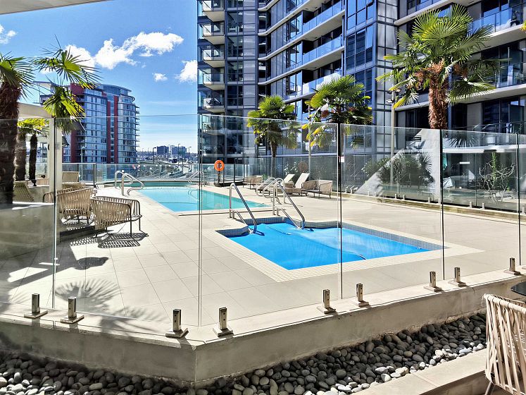 Downtown-Yaletown, Luxury Resort-Style Living at One Pacific by Concord Pacific! This stunning 1-bedroom + den boasts over-height ceilings with Air Cooling System, floor-to-ceiling windows, and brilliant natural light. Den is good enough to be used as 2nd bedroom w/door. The chef's kitchen features Miele appliances, marble backsplash, and quartz counters. Enjoy wide-plank hardwood floors, A/C, a spa-inspired bath with soaker tub, and custom built-ins throughout. World-class amenities include a rooftop dining terrace, glass-bottom pool, fire pit, hot tub, steam/sauna, and 24-hr concierge - all steps from the Seawall, Yaletown's best cafés, shops, and Parq Hotel & Casino. Urban luxury at its finest. Don't miss this opportunity!