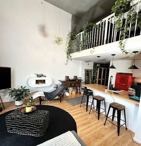 New York Style LOFT with 16 foot concrete ceilings with huge windows that let in TONS of natural light. Balcony looking out to the building courtyard. The Van Horne is a concrete building centrally located just a few minutes walk to the heart of Downtown & steps to some BEST restaurants & bars in the city. Unit is tastefully finished. One parking included ( with a storage shed), bike room. Ready to move in!