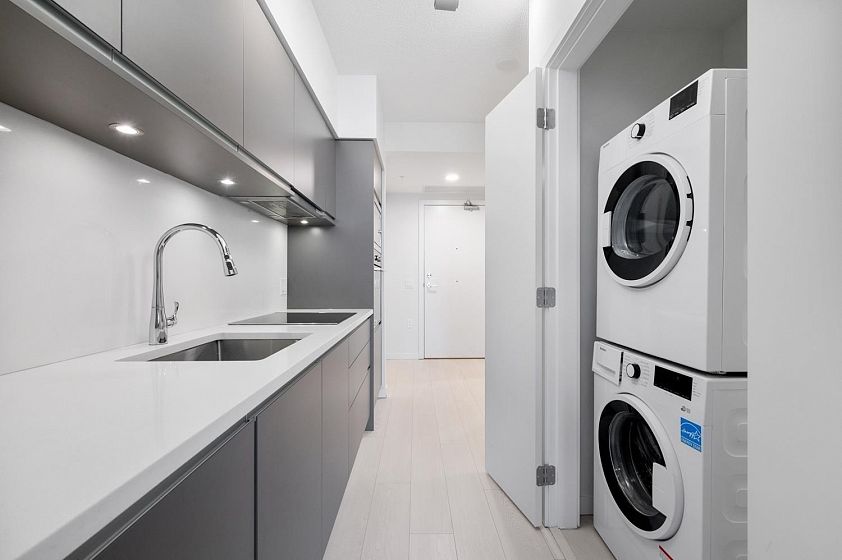 Welcome to SECOND + MAIN, located within walking distance to shops, restaurants, and other amenities at the intersection of Olympic Village and Mount Pleasant. This spacious open concept studio + den features a functional minimalistic design with ample natural light from the floor to ceiling windows, central A/C, high-end integrated kitchen appliances, durable engineered hardwood flooring, in-suite laundry and a large balcony that offers city and mountain views. Building amenities include a fitness center, entertainment lounge with kitchen, and roof top terrace with communal garden, fireplace lounge, and BBQ area. No rental restrictions, short-term rentals permitted. Book your private viewing appointment today! Open House: Sunday April 19, 2026 from 1pm to 3Pm