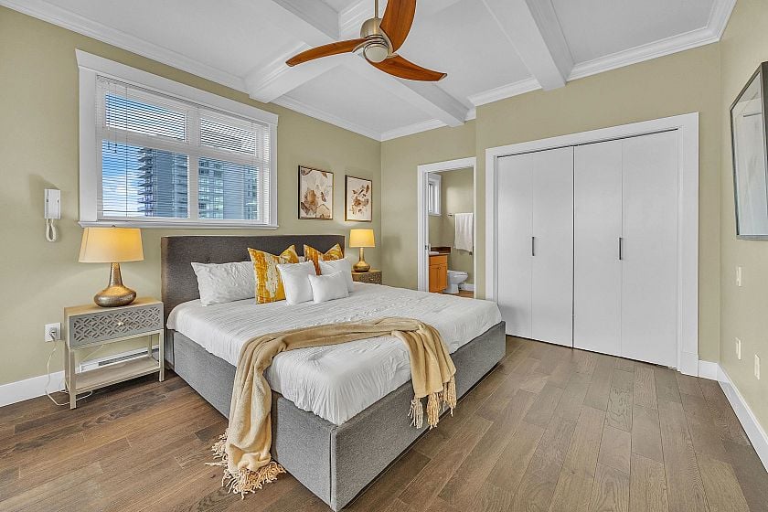 Central Lonsdale remains one of North Vancouver's most sought-after neighbourhoods for good reason: WALK to cafes, restaurants, shops, Whole Foods, parks, excellent schools, and transit with easy access downtown. It's urban convenience wrapped in a community feel. Boutique scale, PENTHOUSE position, and a view that reminds you why you live on the North Shore-so you can watch the fireworks without leaving home ! This 2 level unit with stunning VAULTED CEILINGS gives you the feel of a townhouse. Den on main is perfect for a baby's room or home office. This penthouse represents not just a home, but a lifestyle choice - offering sophisticated urban living with unparalleled convenience and natural beauty literally at your doorstep. Pets welcome! EVprkng and storage!