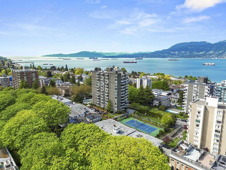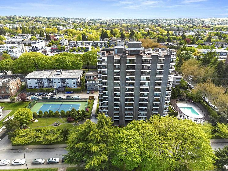 Enjoy resort style living in Vancouver's coveted Kitsilano beach neighbourhood "North of 4th", with sweeping, panoramic unobstructed water, mountain and city views that will take your breath away. Exceptionally well-maintained concrete hi-rise on expansive grounds with a private seasonal heated outdoor pool, tennis courts, garden oasis complete with Adirondack chairs, visitor parking & full-time live-in caretaker. Steps to shops, cafes, restaurants & transit. Handy to UBC & central to all amenities the city has to offer. This 1 bedroom, 1 bathroom suite features parquet hardwood under existing carpet that can be exposed if desired. Includes 1 parking stall & locker. Call your realtor now for more info and to schedule your private tour.