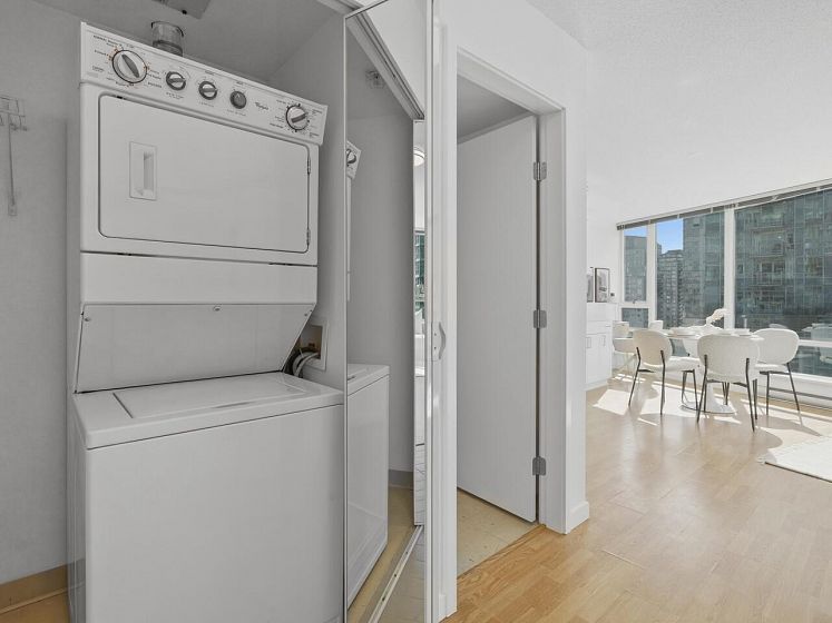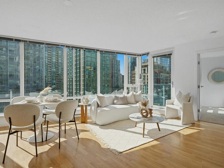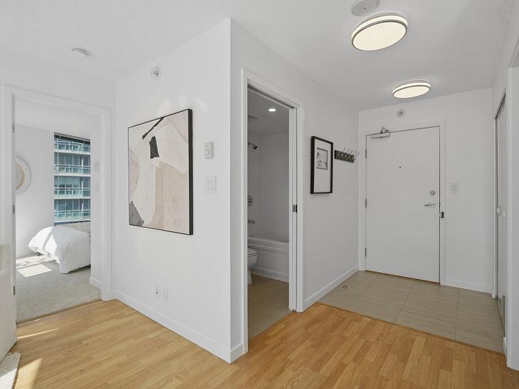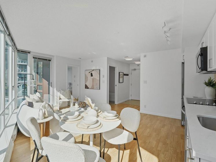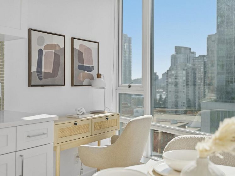 Welcome to TV Towers in the heart of downtown Vancouver! This fully updated 1 bed + flex, 1 bath home offers 578 sqft of bright, open-concept living. Renovations include new kitchen appliances, quartz countertops in kitchen and bathroom, updated cabinetry, new bathroom vanity and sink, bedroom carpet, modern lighting, and fresh paint-move-in ready. Floor-to-ceiling windows fill the space with natural light and showcase city views with a peek-a-boo water outlook. Enjoy premium amenities: gym, party/meeting room, hot tub, and 24-hour concierge. Steps to top dining, shopping, transit, and entertainment. Ideal for end-users or investors. Book your showing today!