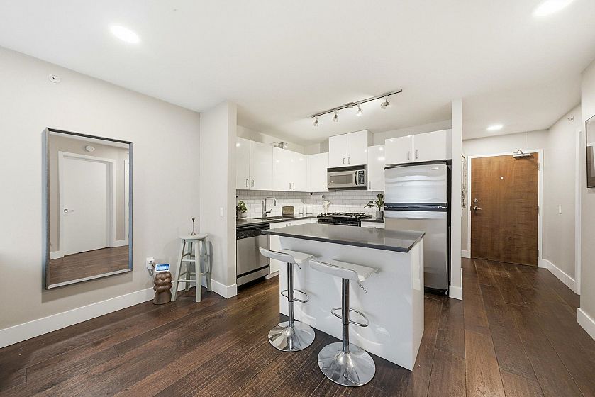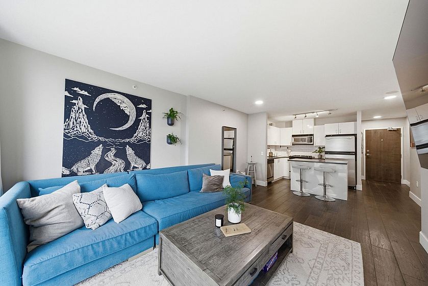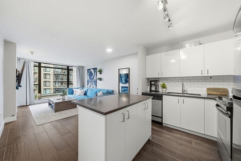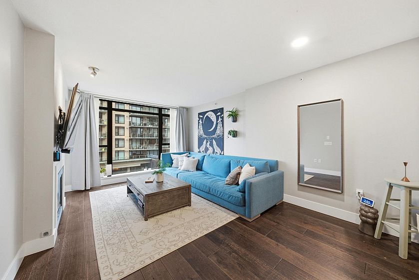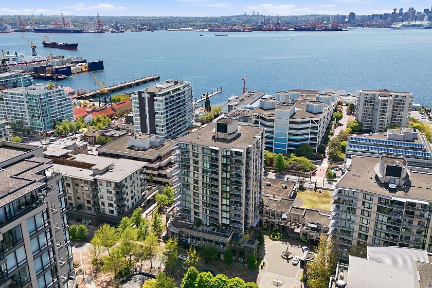 Bright, west facing 1 bedroom & den in the highly sought after Time building in the heart of Lower Lonsdale. Quiet & inviting, this home features floor to ceiling windows w/ partial views of Downtown Vancouver & Burrard Inlet, plus a covered balcony perfect for sunsets & summer BBQs. The open layout is functional & welcoming with a cozy gas fireplace, while the kitchen offers a gas range, breakfast bar & ample storage. The den adds flexibility for a home office or storage. Includes 1 parking, locker & bike storage, with pets welcome. Well run building with onsite caretaker, party room & visitor parking. Steps to LoLo’s best cafés, breweries, restaurants & the Spirit Trail. Walk to the SeaBus & connect seamlessly to DT & YVR. Incredible opportunity to live the ultimate North Van lifestyle!