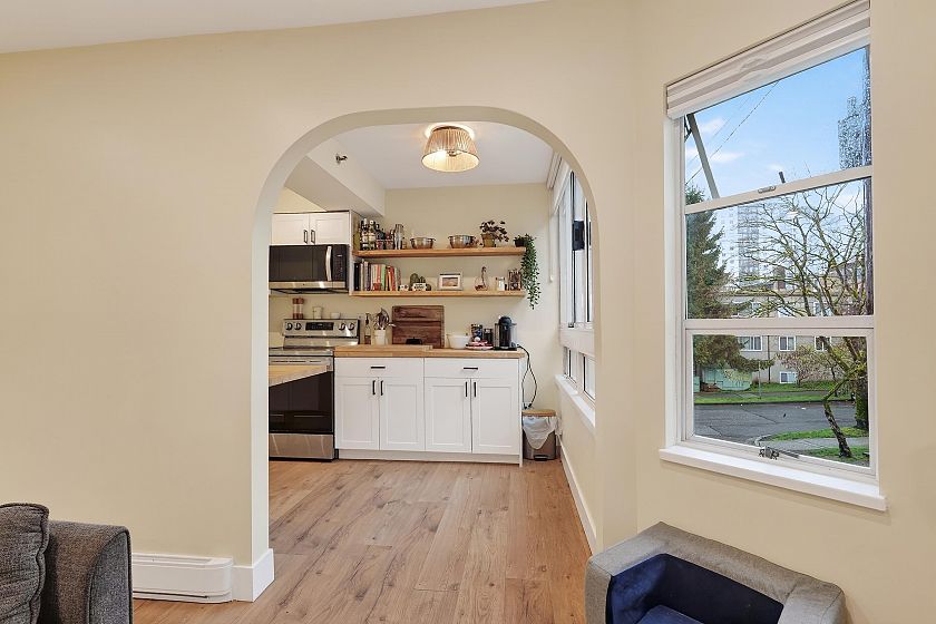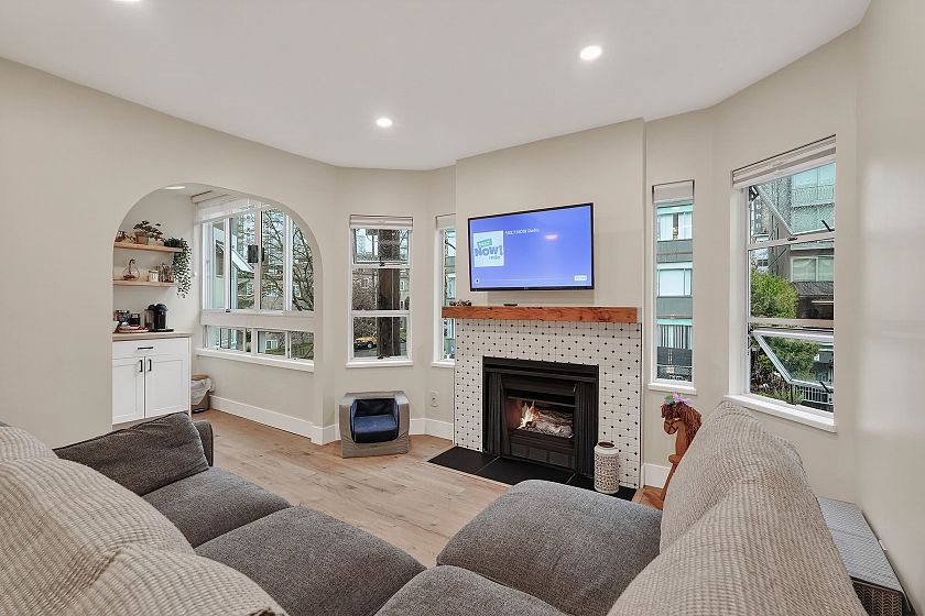 You can’t beat this location! Just a couple blocks from the beach in the heart of the West End, this beautifully updated 1 bed + den offers the perfect mix of city living and quiet comfort. Inside you’ll find a bright, functional layout with a versatile den -ideal for a 2nd bedroom or home office. The home features an updated and extended kitchen, new cabinetry, countertops, flooring, lighting and in-suite laundry, plus a cozy gas fireplace. Enjoy a peaceful, private feel just steps to shops, restaurants and the seawall. Pet-friendly building (3 pets allowed) with parking and storage included. Move-in ready!