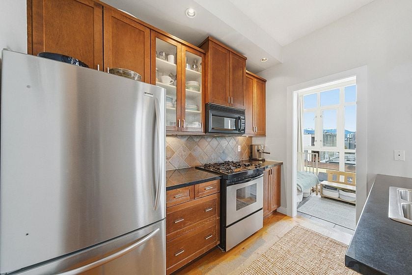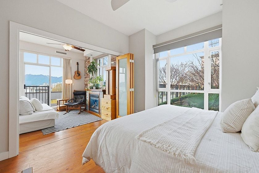 The Elements is a boutique concrete building in the heart of Mount Pleasant. This bright 1 bedroom and den home features high ceilings, hardwood floors, exposed brick, and stunning city and mountain views. The layout is efficient with a spacious den, in-suite laundry, generous in-unit storage + a separate storage locker and one secured parking stall. Just steps from cafes, transit, breweries, and Olympic Village. A perfect blend of character, solid construction, and lifestyle location.