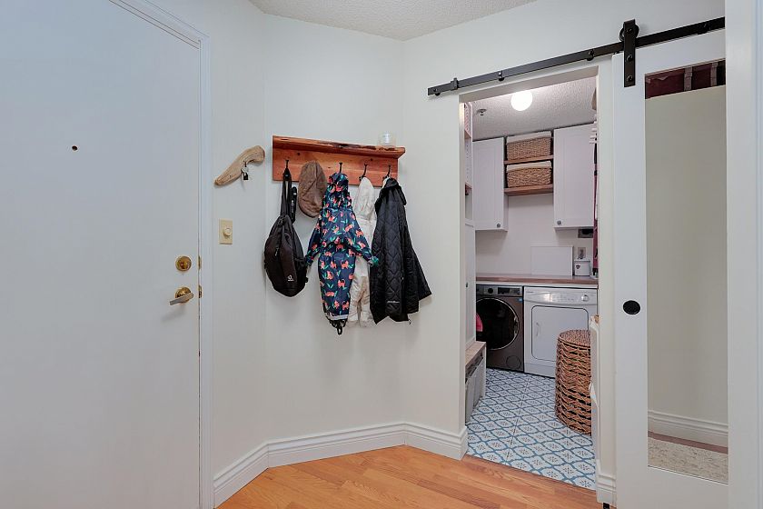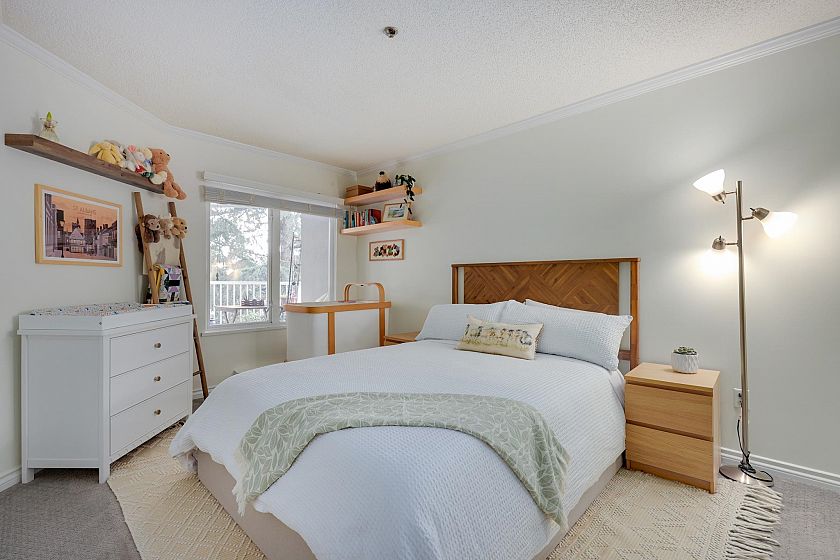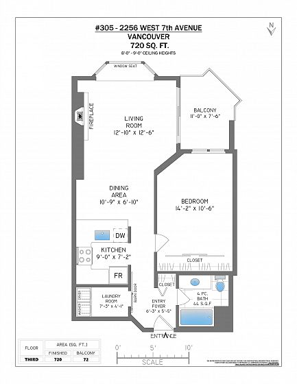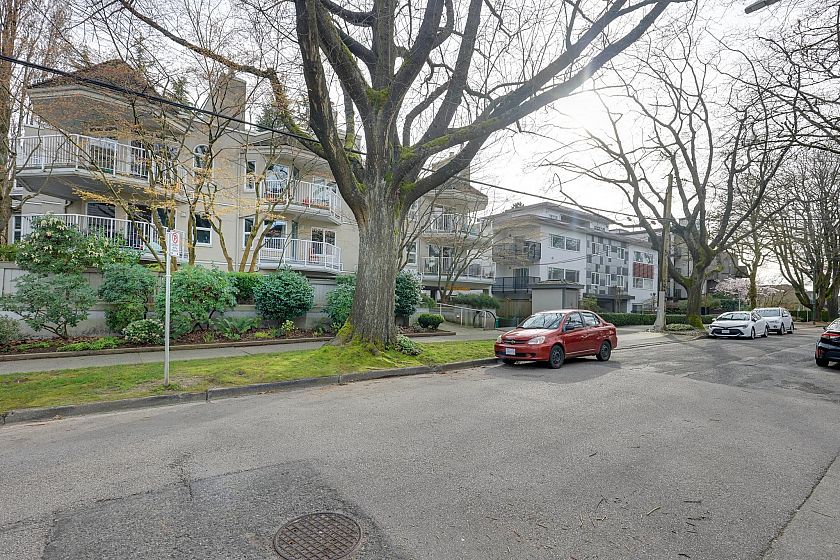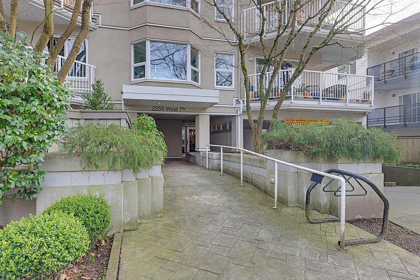 Spacious and immaculate one bedroom suite in wonderful Windgate. Well managed & maintained boutique building in prime Kitsilano location. Nice, quiet street with easy walk to beach, parks, comm ctr, shops, restaurants, transit and Arbutus Greenway. Good, open layout with 720 sf living area plus large south facing balcony, covered for year-round enjoyment. 9 ft ceiling in living room and beautiful bay window provides lots of natural light and pretty outlook. Wood-burning fireplace creates cozy and warm ambiance. Fantastic home with many updates including kitchen quartz counters & SS appliances, bathroom with granite counter & heated floor, solid hardwood floors, crown mouldings, paint, etc. Walk-in laundry room also has extra storage space. Separate locker, parking stall and bike room.