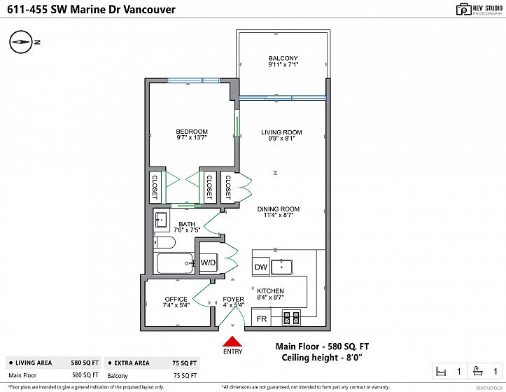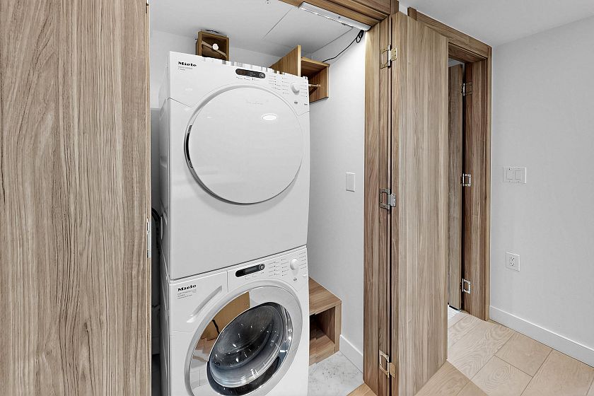 Welcome to W1 WEST by Concord Pacific. This bright west-facing one bedroom+den unit has it all! It is air-conditioned for year round comfort, offers a practical U-shaped kitchen equipped with Miele appliance package, plus a bathroom can be converted to ensuite at night for added convenience. High-end finishes including custom closet organizers, laminate flooring, marble bathroom tile, along with resort-style amenities such as concierge service, a fitness centre, party room and so much more. Centrally located, minutes walk to the Marine Drive skytrain station, T&T Supermarket, banks, shops, movies and restaurants. Minutes drive to Oakridge Centre, DT, Richmond, and airport. School catchment: Sexsmith Elementary and Churchill Secondary. Comes with one parking and one locker.