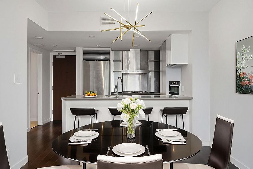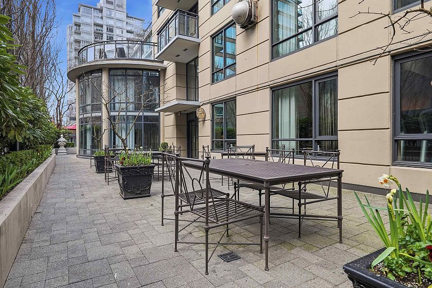 Welcome Home to L’Hermitage. This 617 SF home is rarely avail and features 1 Bed+Den, 1 bath, efficient floor plan, open kitchen with Sub-zero & Bosch stainless steel appliances, gas stove, breakfast bar, open balcony, air con, 1 parking stall. Building has great hotel amenities for residents to enjoy incl concierge, fitness studio, steam room, outdoor pool & jacuzzi, rooftop garden, meeting room, library, lounge areas. Opportunity to live in the heart of downtown and call this your home or to rent out. Central location in Downtown Vancouver, walkable to shopping, restaurants, financial district, sports & entertainment, Granville Mall, Yaletown, Skytrain station, public transit. Quick completion possible and move in ready! Principal rooms in suite are virtual staged with furniture.