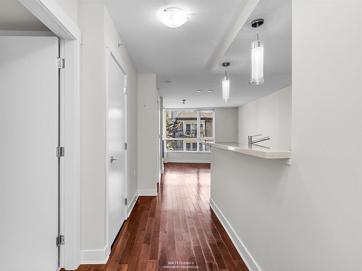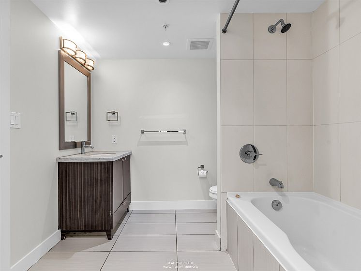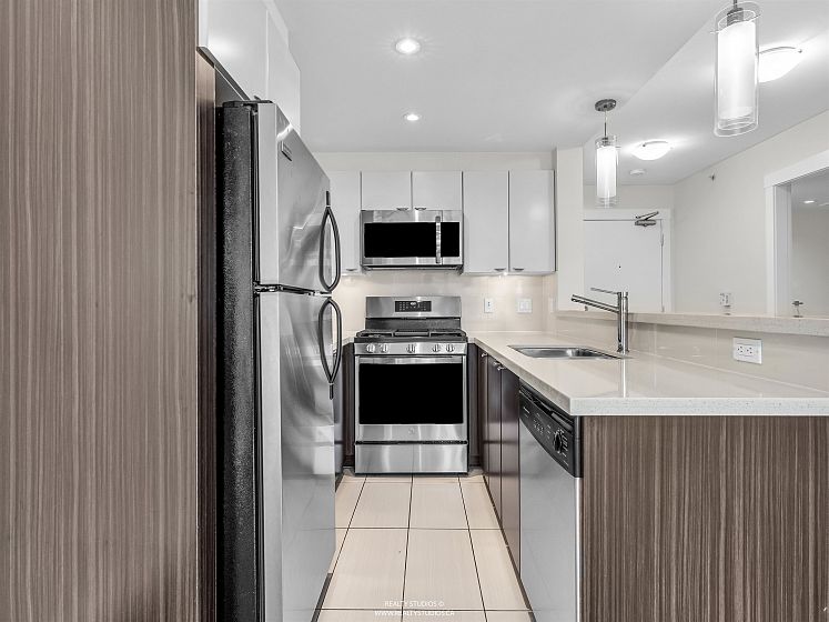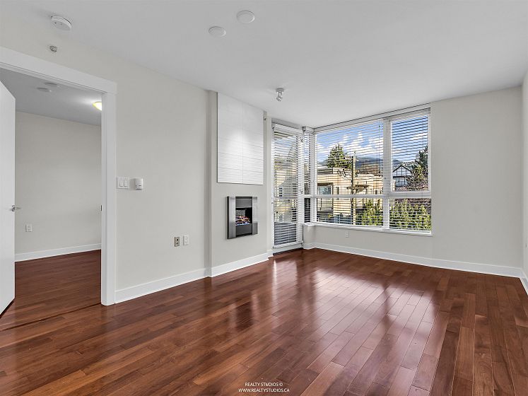 Welcome to The Envy, the pride of Lower Lonsdale! Concrete Construction built to LEED standards which adhere to environmental quality, energy and water efficiency. Inside you will find an amazing one bedroom and den with an open concept floor plan, over 700 sqft of total living space and gorgeous mountain views! Situated on the quiet side of the building, this beautiful unit shows like new and includes radiant in-floor heating, quartz countertops, electric fireplace, in-suite laundry and engineered hardwood floors throughout. An easy stroll to all of the great restaurants, shops and amenities that Lower Lonsdale has to offer including the Sea Bus Ferry Terminal. Enjoy the convenient lifestyle of living in the heart of North Vancouver. Public Open House on Saturday, March 28th from 2-4.