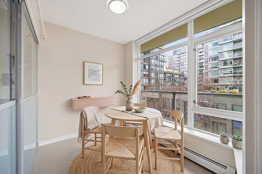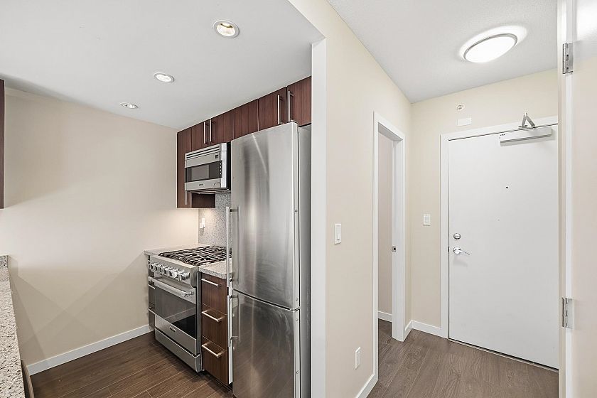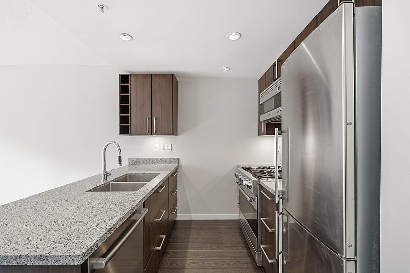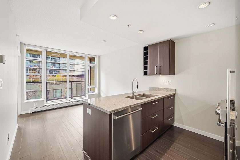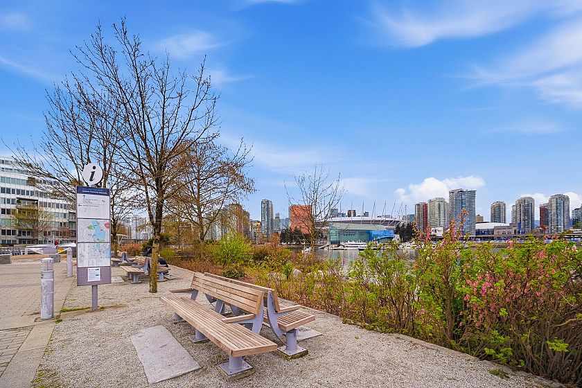 ***Lifestyle living at the WALL CENTRE False Creek in Olympic Village*** Bright & spacious 1 bedroom +flex space, den and cozy balcony with courtyard views. Efficient floorplan, open concept kitchen with granite countertops, S/S appliances and gas stove. Newly painted unit. Building amenities include meeting rooms, exercise centre, guest suite and rooftop garden. Walk everywhere, seawall, Save -On- Foods, London Drugs, restaurants, cafes, shops, Skytrain stations, public transit. One parking stall.