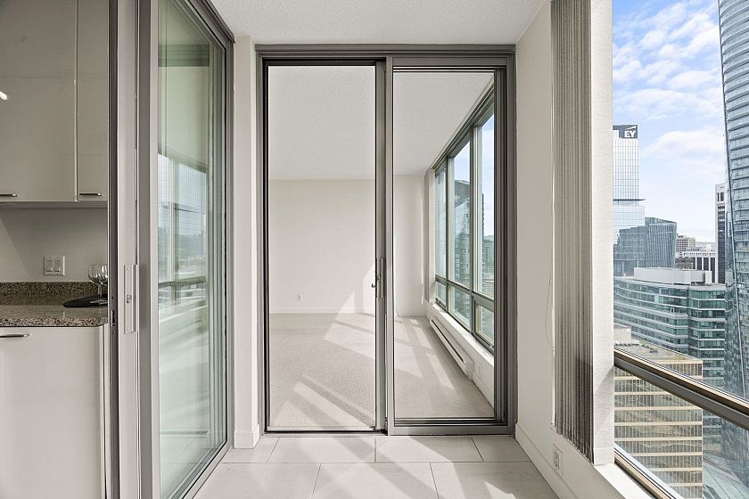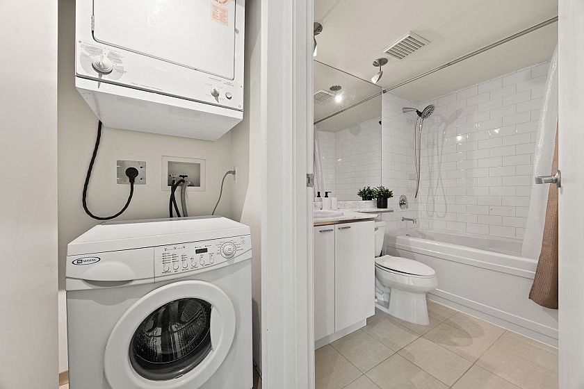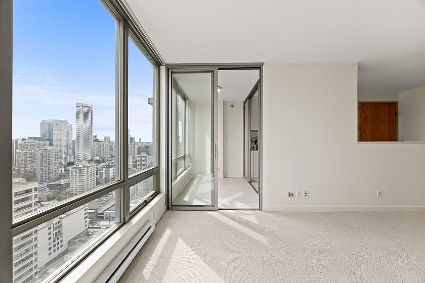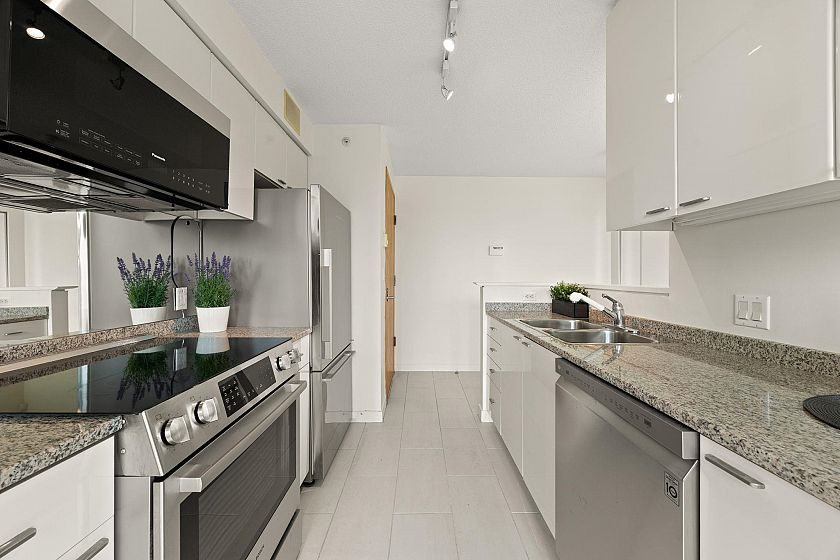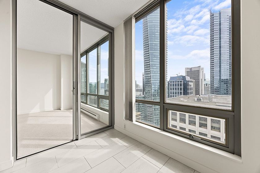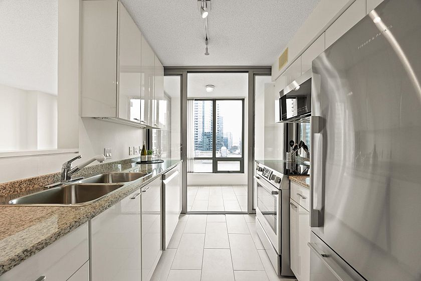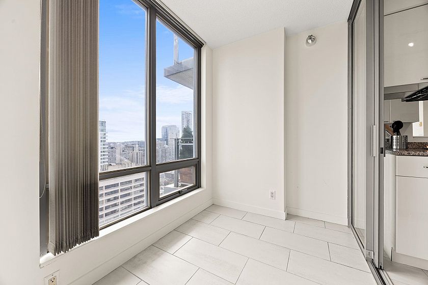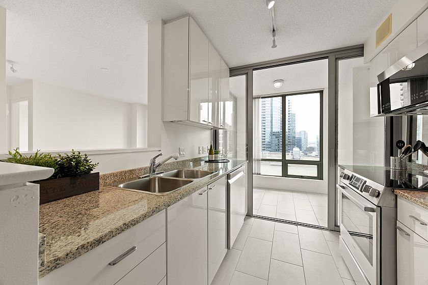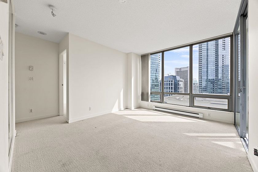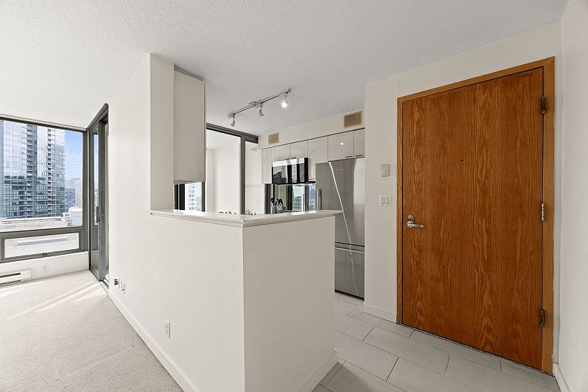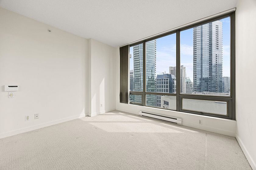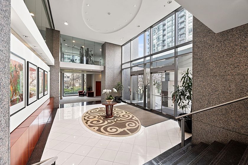 Location, location! This is the perfect unit for stylish downtown living or an investor. This well designed 1 bed + den is situated high in the building with floor to ceiling windows and and beautiful city views (w/peekaboo waterviews of Coal Harbour). Filled with natural light and updated with brand name Stainless Steel appliance (Bosch/Fisher Paykel). Includes 1 parking, and 1 locker. Convenient amenities includes fitness centre, bike room and meeting rooms, 24 hrs concierge service and on-site security guards. Walking distance to everything you need: Transit, Coal Harbour, Stanley Park, Alberni & Robson Street shopping and fantastic restaurants. Don't miss out on this fantastic location and home!