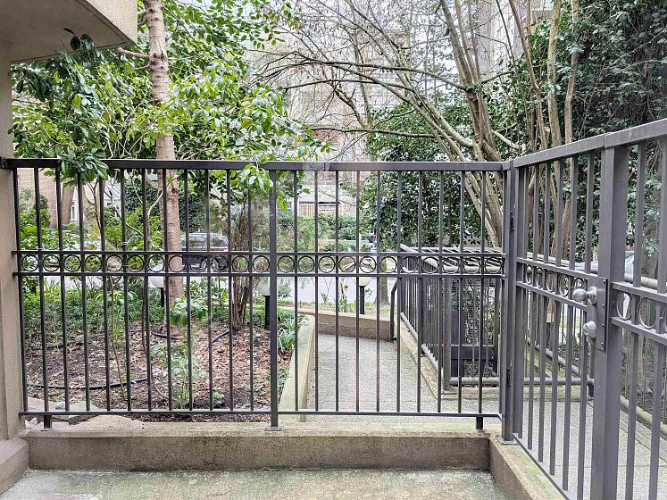 Welcome to this spacious and thoughtfully laid out 1 bedroom, 633 sqft ground level home in Vancouver’s vibrant West End. Enjoy easy access and a private 9'1 x 6'8 patio; perfect for morning coffee, evening drinks, or a cozy spot to entertain. This low maintenance unit offers a practical floor plan, laminate flooring, and in-suite laundry, with 1 parking stall included. Conveniently located steps from shops, restaurants, and the waterfront, this home is ideal for first time buyers, downsizers, or anyone seeking a functional, walkable lifestyle in one of the city’s most sought after neighborhoods. OPEN HOUSE APRIL 18/19 SAT/SUN 2PM-4PM