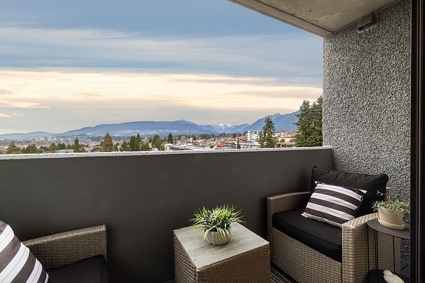 Spectacular southwest PANORAMIC VIEWS of the OCEAN, city skyline, Lions Gate Bridge & the Lions define this LUXURIOUSLY RENOVATED corner residence in a solid concrete building, in the heart of Lower Lonsdale. Thoughtfully updated, it features a new kitchen, custom cabinetry updated bathroom, luxury vinyl plank floors, new baseboards, smooth ceilings, quartz countertops, & new pot lighting. Bright, generously proportioned living & dining areas easily accommodate full-size furnishings, while principal rooms showcase the stunning views. The well-managed building offers amenities including a gym, lounge, tennis court, landscaped courtyard & secure bike storage. Just steps to Lonsdale Quay, Shipyards, SeaBus, dining, breweries & all conveniences. Elevated urban living in the heart of Lolo.