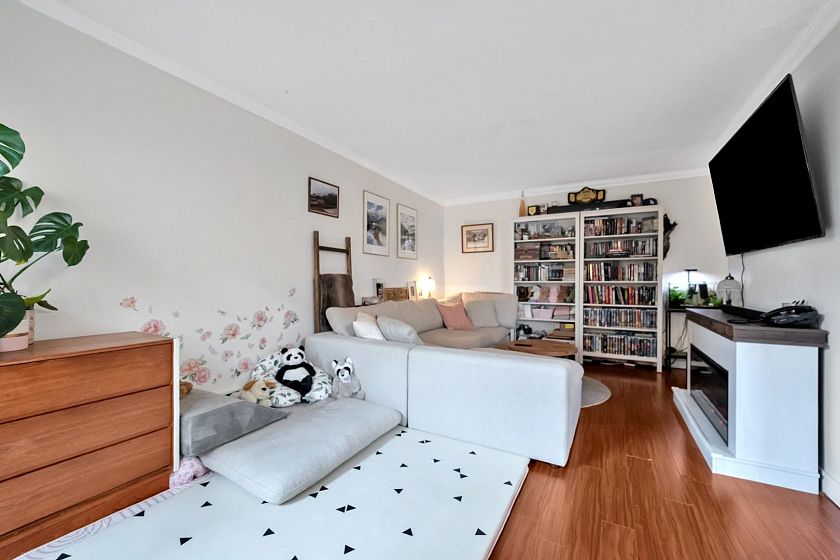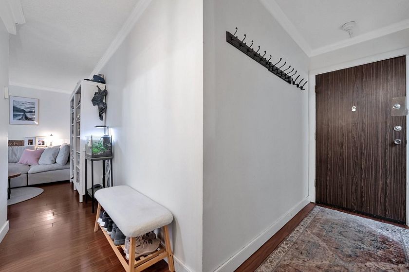 Bright and spacious suite in a well-maintained building in Central Lonsdale, steps to Lions Gate Hospital, shops, cafés, and restaurants. Close to Whole Foods, Loblaws, and the vibrant Lonsdale strip. Elevated first-floor home (not ground level) with a southwest-facing balcony offering great light and outdoor space. Features engineered hardwood floors, crown mouldings, heritage-style doors, and modern lighting. Updated kitchen with solid wood cabinetry and white appliances, plus a refreshed bathroom. Transit to Vancouver is right outside, with Club 16 and Fitness World nearby. Walk to Lonsdale Quay, Shipyards, and the waterfront. Includes parking and storage. Safe, central location with strong walkability and everyday convenience.