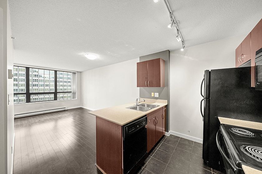 Welcome to Electric Avenue by Bosa, a quality concrete building in one of Downtown Vancouver’s most convenient locations. This move-in ready 1 bed + den home offers a bright layout with southwest exposure and city, green space, and peek-a-boo mountain views. The spacious bedroom fits a king-size bed and features walk-through Closets to a cheater ensuite. The home includes nice open kitchen, in-suite laundry, and a south-facing balcony perfect for BBQs. A versatile den/flex space is ideal for a home office or storage. Building amenities include 24-hour concierge, fitness centre, theatre room, party lounge, and rooftop patios. Steps to Robson Street, restaurants, IGA, Pacific Centre, transit, and SkyTrain. Offering the ultimate downtown lifestyle.