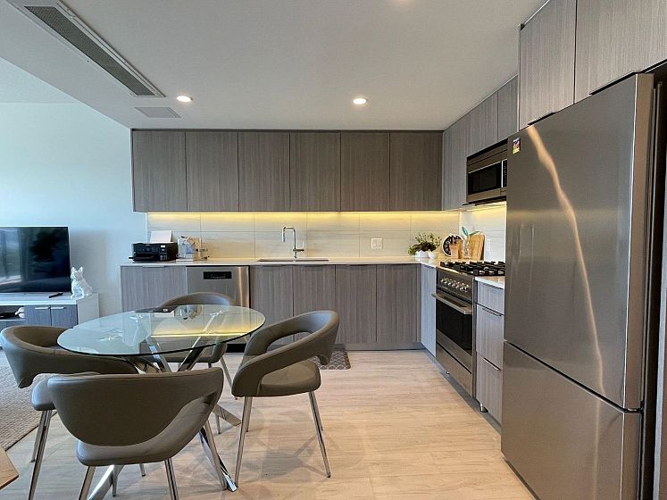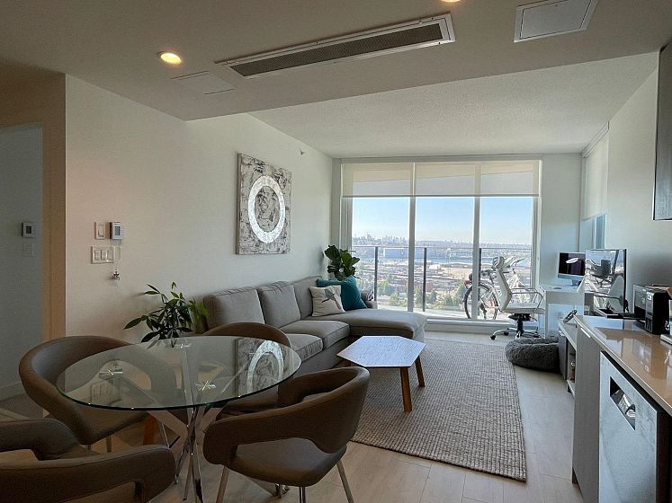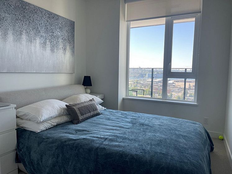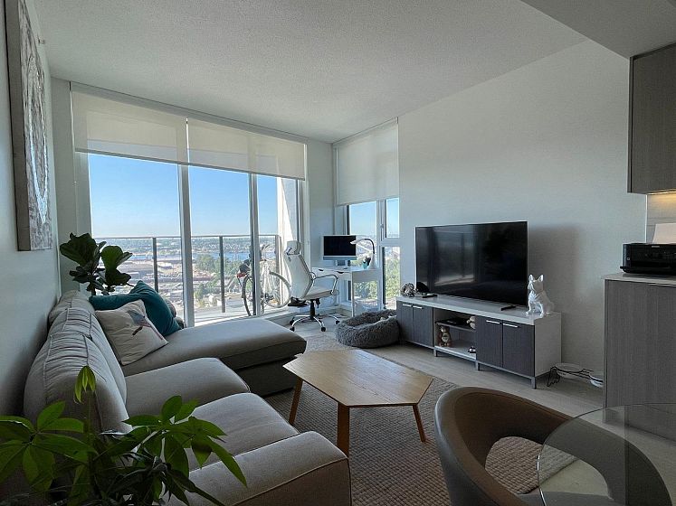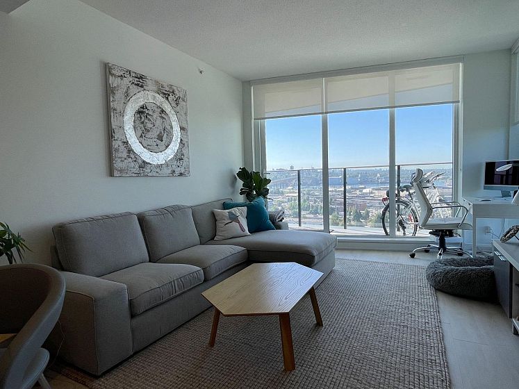 Panoramic WATER & CITY VIEW, on the 20th floor at "Hunter at Lynn Creek" . Bright & spacious SOUTHWEST facing 649 sqft 1 bedroom & Den with A/C at highly sought after development in the neighbourhood developed by Intergulf. Open plan kitchen has ample quarts counter space, modern cabinetry, S/S appliances & gas stove. Large private balcony and unobstructed water and city views will brings you a panoramic view. Few minutes drive from shopping, restaurants, Deep Cove, and HWY 1. The building offers a party room, gym, outdoor BBQ, children playing area, sauna social lounge, wellness centre and bike repair room and tens of visitors parking The unit faces unobstructed south view of water , mountains and second narrow bridge. EV Parking,Locker