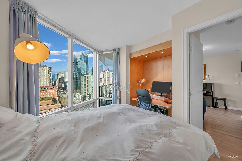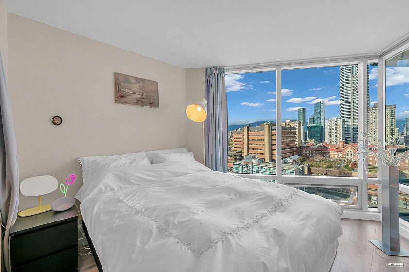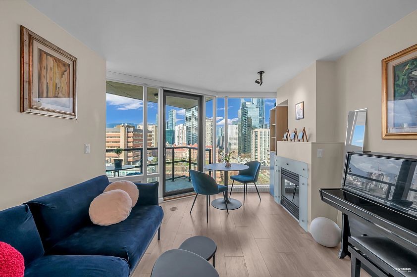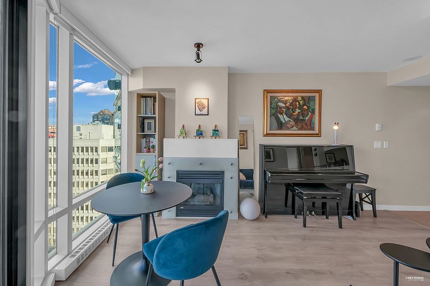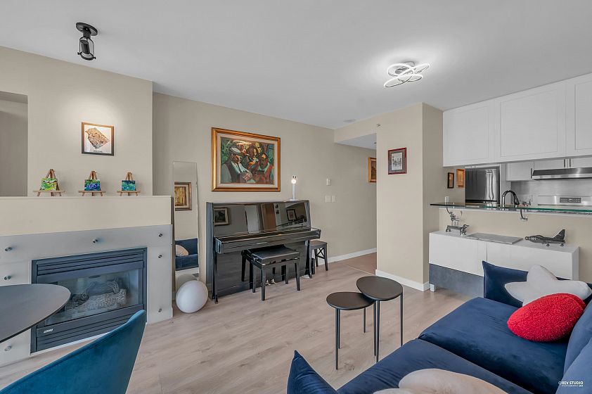 VIEWS FOR DAYS! Experience elevated urban living in this stunning unit at Milano by Cressey. Thoughtfully designed 1-bed, 1-bath home with an open-concept layout featuring floor-to-ceiling windows, modern kitchen equipped with S/S appliances, bright living/ dining area complete with a cozy gas fireplace & a private balcony to take in the unobstructed scenery including mountains & water! Enjoy the versatility of a extra large walk-in closet—perfect for extra storage or home office nook. Amenities include a gym, bike room & courtyard. Ideally located steps Davie Village, the Seawall & the Aquatic Centre, you’re surrounded by some of the city’s best dining, shopping & recreational options. This is city living at its finest. Book your showing today!