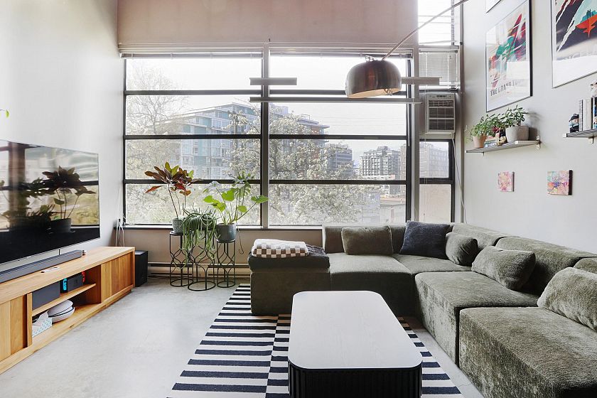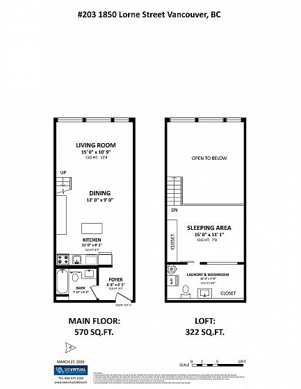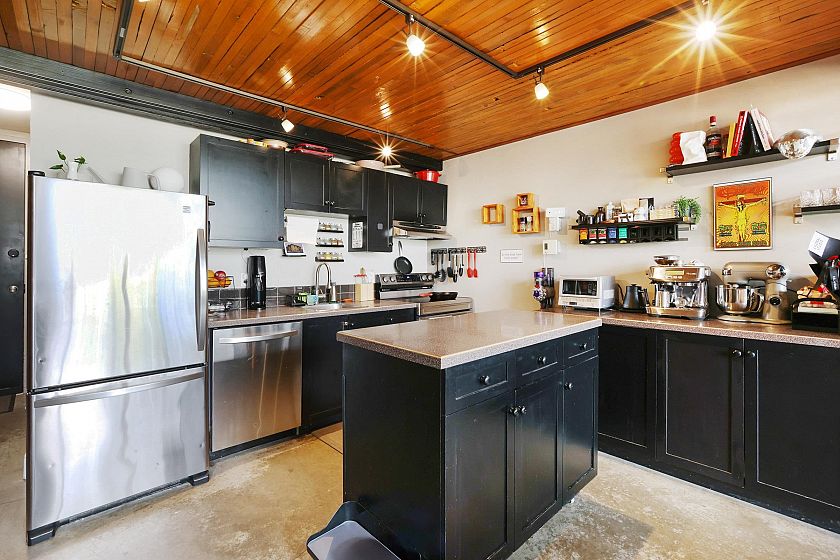 ICONIC VANCOUVER DI VINCI STUDIO – perfect combination of living or work/live. Eclectic space w/tons of windows & extra high ceilings! Totally unique with loft area giving you 2 separate areas of living. Main: EXTRA HEIGHT living & dining areas flex to your life style & spatial choices. Spacious kitchen has ample cupboards & counter pace plus a center island! Foyer boasts an 8ft door into this home. Nice Foyer entrance w/a 4 piece washroom. Upper: loft area is 322 sq ft providing lots of options for lounge/sleep areas plus powder room, laundry & closet. LOCATION: ideal close to Emily Carr, Olympic Village, breweries, shopping, theatre & dining. BONUS: 1 parking stall/1 locker! Open House Saturday April 4th 12 - 2pm.