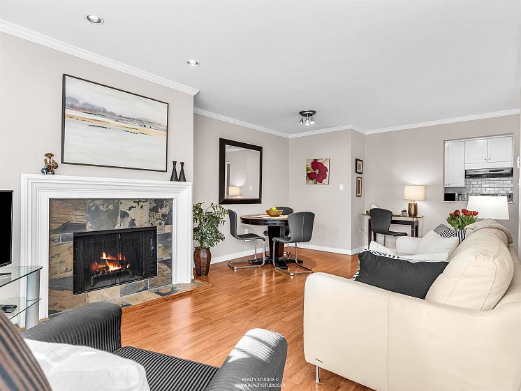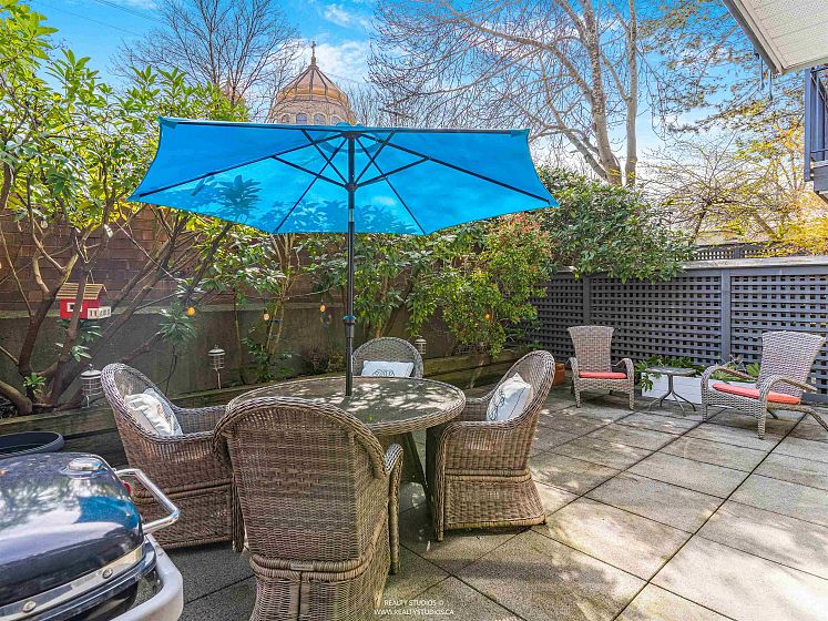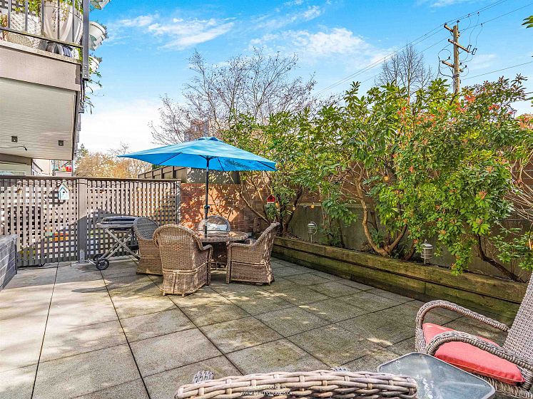 Welcome to Cambridge Place-a fabulous suite in the heart of Fairview & Cambie Village with a walking score of 95! This spacious 660 sq ft south facing garden unit has a spacious 366 sq ft patio perfect for entertaining and your TWO pets. BONUS TWO parking stalls!! Updated kitchen cabinets and newer stainless steel appliances. Open concept living/dining with a stunning updated fireplace and built in book shelves. Generous in-suite laundry with ample storage. This well maintained building has seen major updates including: rain-screening/roof/window/balconies/ parkade membrane(2003) and building repiping completed in 2005. Buy with confidence. Can't beat this great location for easy access to Skytrain, VGH, fitness facilities, groceries.OPEN HOUSE SUNDAY APRIL 26TH, 2:00-4:00PM