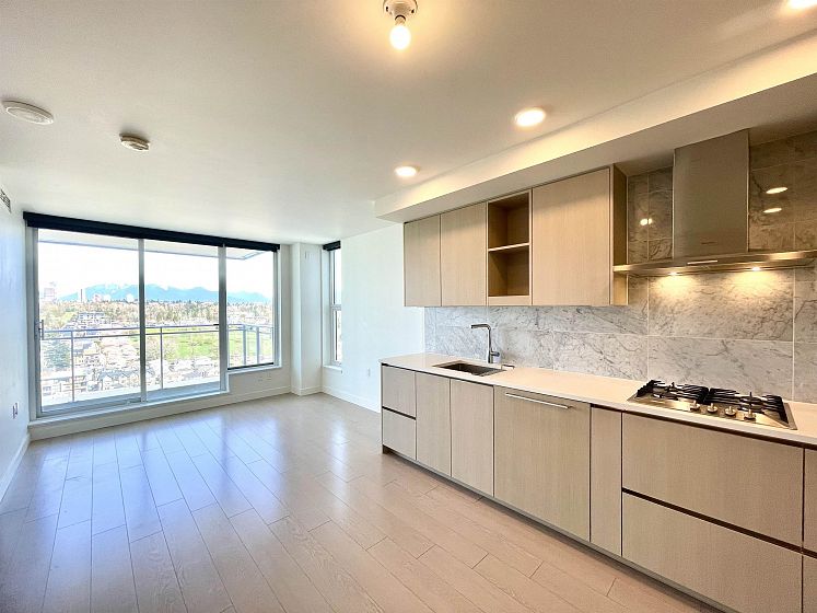 W1 West Tower built by Concord Pacific. Concrete highrise, upper corner unit facing north with unobstructed mountain and park view. 1 bedroom plus DEN, 1 bath, functional layout. Include 1 EV parking, 1 bike locker. Spacious gourmet kitchen with Miele appliances, wood flooring throughout, and good size balcony. Great facilities include exercise centre, party room, Yoga room, ping pong table, Karaoke room, games room, 24hrs concierge. J.W. Sexsmith Elementary and Sir Winston Churchill Secondary School catchment. Walking distance to Marine Drive Canada Line skytrain station, bus loop, cinema, T& T supermarket, restaurants, bank, and park.