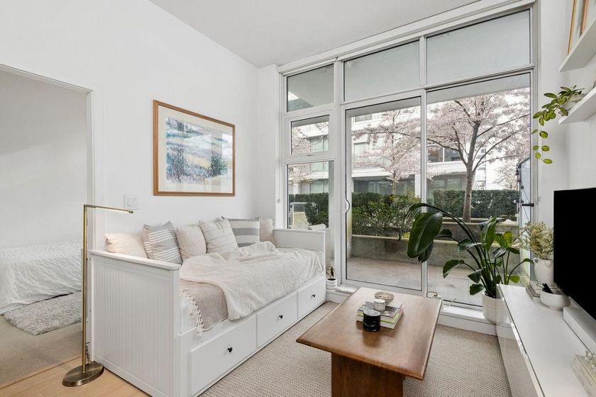 Welcome to Kensington Gardens! This unique loft-style 1 bed + den home features overheight ceilings and a bright, open layout that creates an airy, spacious feel. Located on the mezzanine level, enjoy rare direct access to the outdoor pool and a 203 sq. ft. private patio—perfect for entertaining and seamless indoor-outdoor living. Beautifully maintained, the home offers engineered hardwood flooring, a chef’s kitchen, and large windows that fill the space with natural light. Enjoy resort-style amenities including a pool, hot tub, sauna, gym, theatre, concierge, BBQ area, and garden courtyard. Situated above T&T Supermarket and steps to transit, dining, and daily conveniences. Pet- and rental-friendly