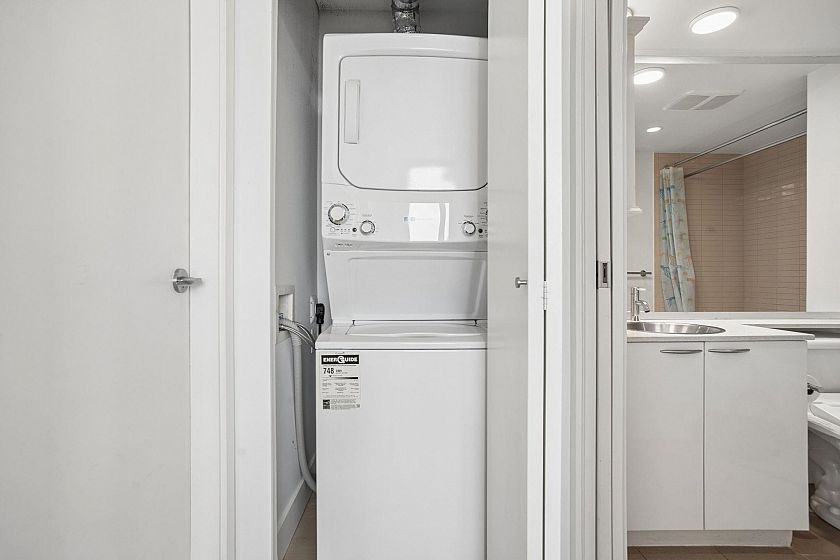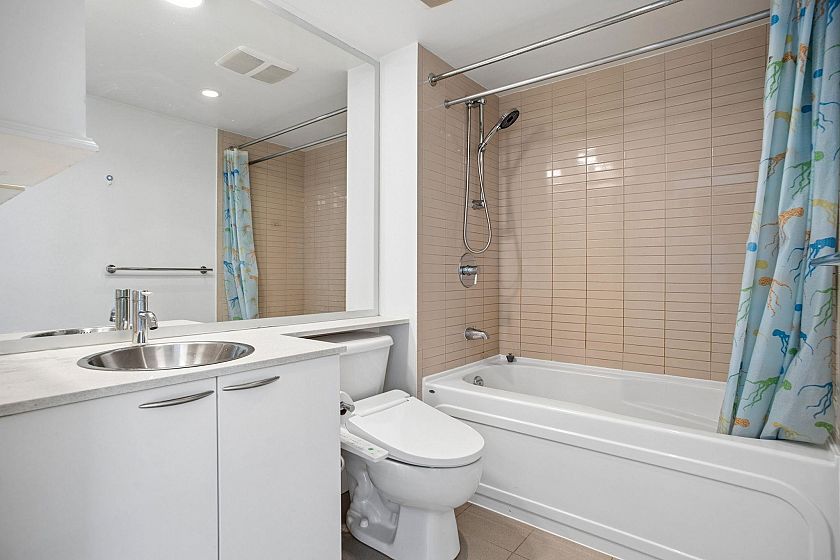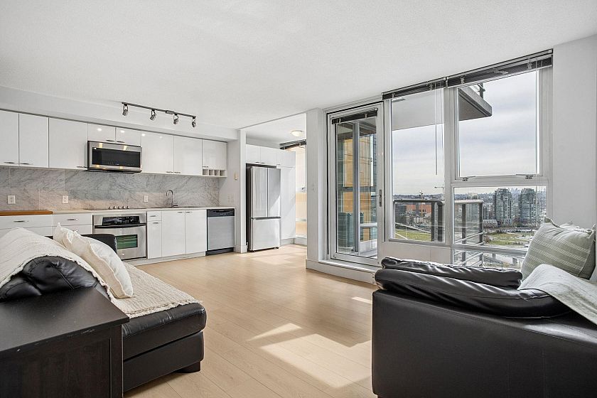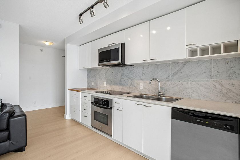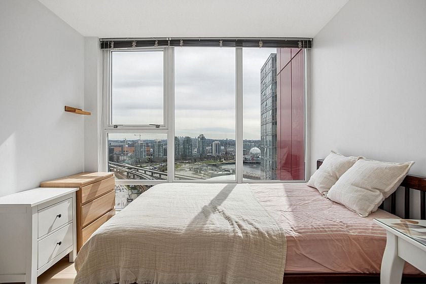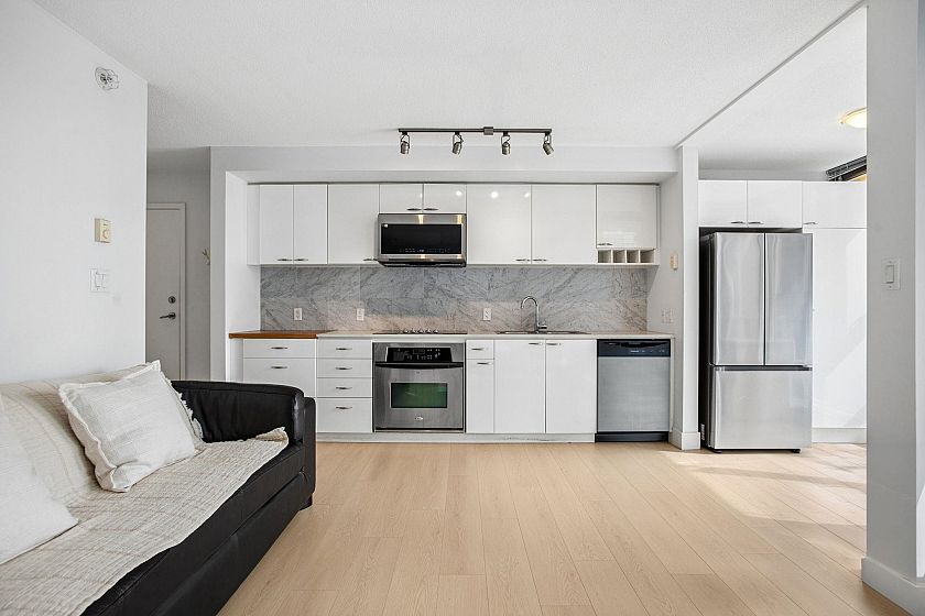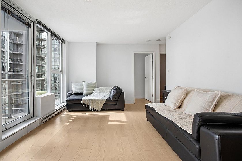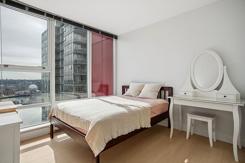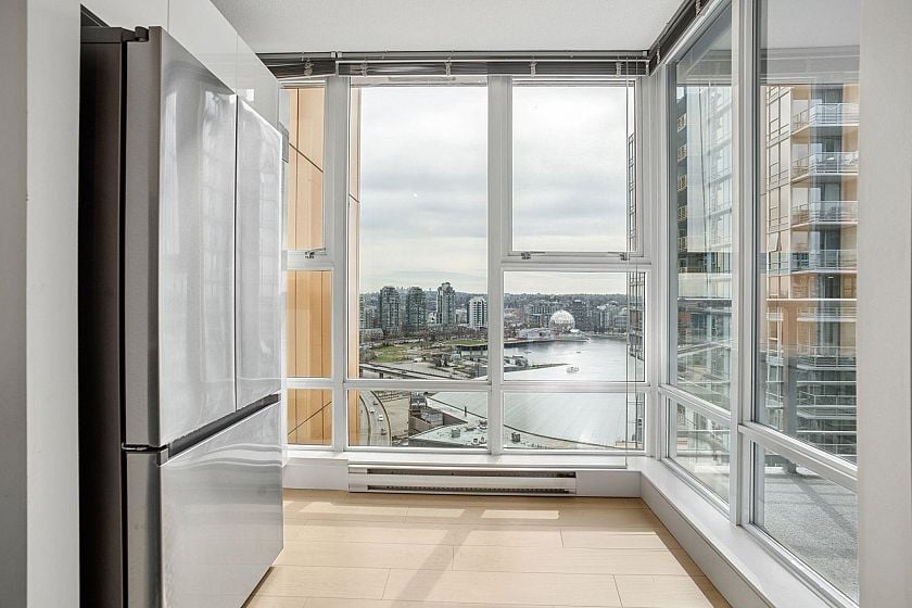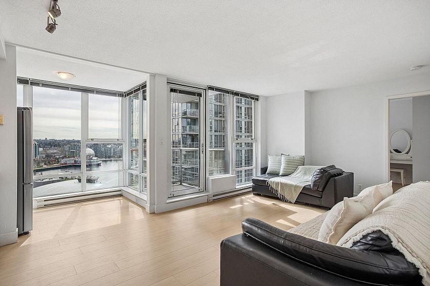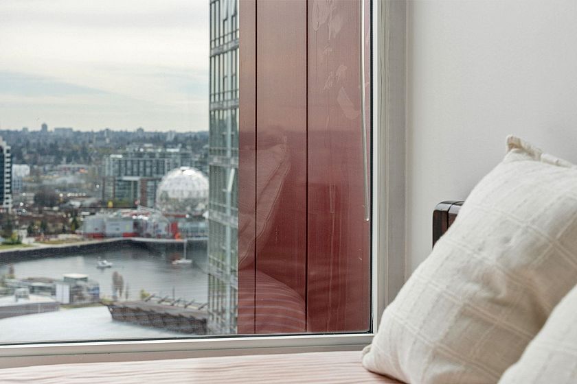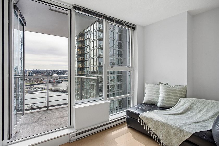 Total package 1-bedroom deal. False Creek water view. Spacious living room. Extended kitchen. Solarium. Den. Includes parking and locker. New flooring and appliances. Excellent amenities with concierge service. Great downtown location. Walk to Robson, Stadiums, SkyTrain, Costco, T&T, and the Seawall. Call today