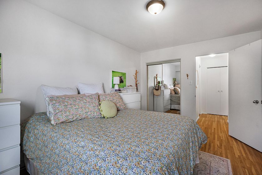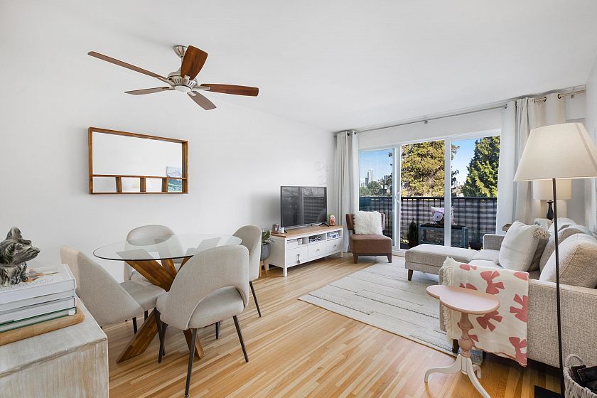 North of 4th 1 bedroom classic Kits condo with mountain views!! Cute as a button, this spacious, open concept home with hardwood floors throughout has been updated over the years to make it the perfect Kits pied-a-terre. The large living/dining room allows for proper sized furniture and features mountain views from your East facing patio. The generous sized bedroom has plenty of space for a King Size bed and a dresser. This pro active strata has done many updates over the years and allows pets (1 dog or 1 cat) and rentals. Included is 1 parking spot and 1 storage locker. 2 blocks from Kits beach, W 4th shopping and endless cafes, restaurants and bars. With easy access to downtown and UBC this is urban living at its finest! Open House Saturday April 25th 3:30-4:30pm.
