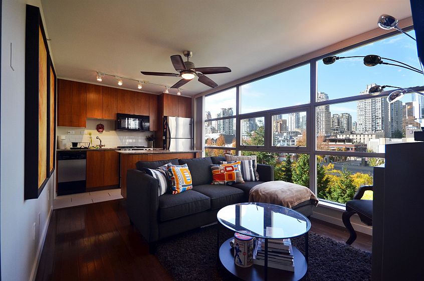 Thoughtfully designed 1 bed/1 bath + den in the heart of Yaletown — proof that a compact footprint and smart layout can deliver a genuinely comfortable home. The open-concept living area features floor-to-ceiling windows, a cozy fireplace, and a kitchen outfitted with stainless steel appliances and plenty of counter space! The primary bedroom includes a Murphy bed for added flexibility, while the den functions beautifully as a dedicated home office — distinct, usable spaces that rarely come together this well at this size. Walk Score 99. David Lam Park, the seawall, world-class restaurants, and Yaletown's best shopping are steps from your door.