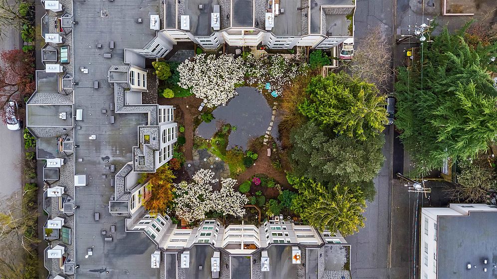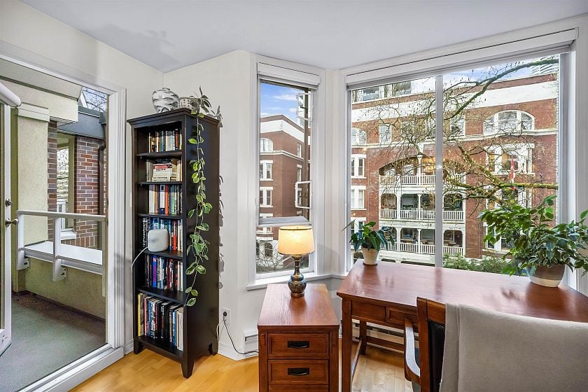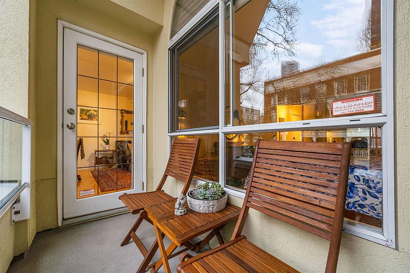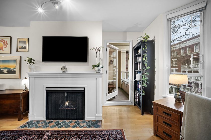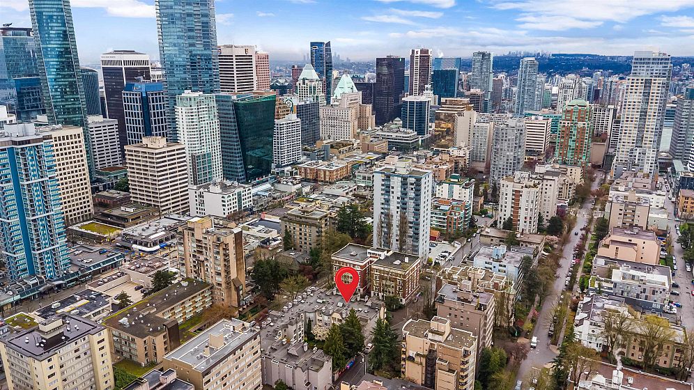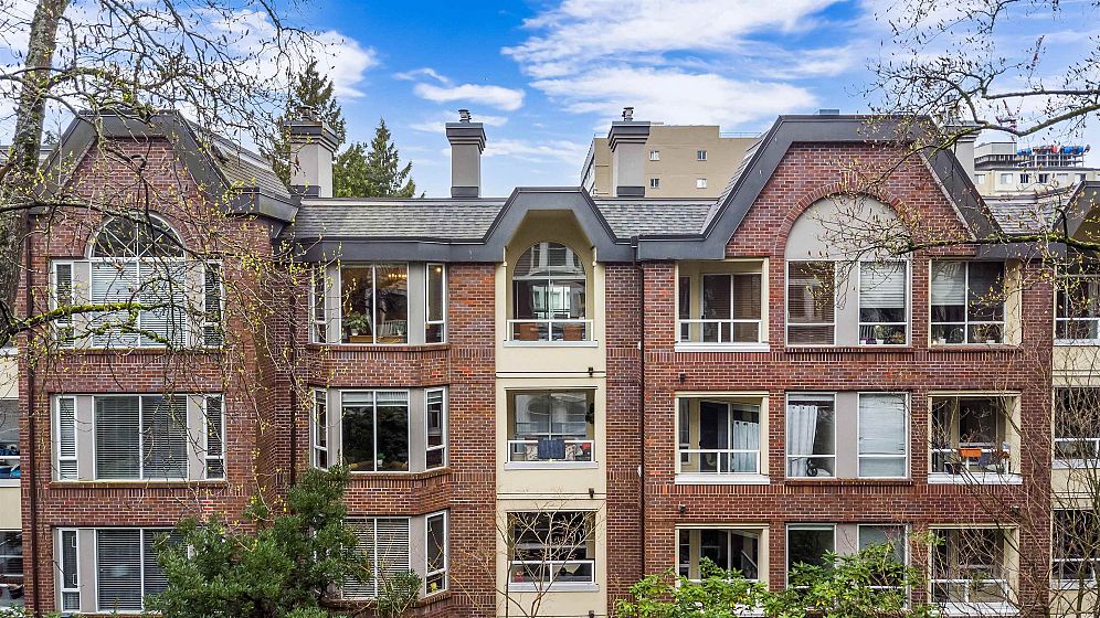 Top-floor West End retreat. Overlooking the Bute Street pedestrian walkway & on a traffic-calmed, tree-lined street, this charmer delivers a rare, quiet urban setting, yet Robson & every urban amenity steps away. Generous rooms provide ample space to live, dine, work, & unwind. Classy, timeless gut renovations of the kitchen & bath feature stainless appliances & a deep soaker tub. The vaulted, cathedral bedroom ceiling highlights the arched window, adding volume & character. Gas fireplace, in-suite laundry & covered balcony too! Feel confident buying into this highly reputable building with private, ponded courtyard, and a track record of consistent maintenance & solid financials. Find balance of energy and ease in one of Vancouver’s best neighbourhoods. Pets welcome! 1 parking, 1 locker.