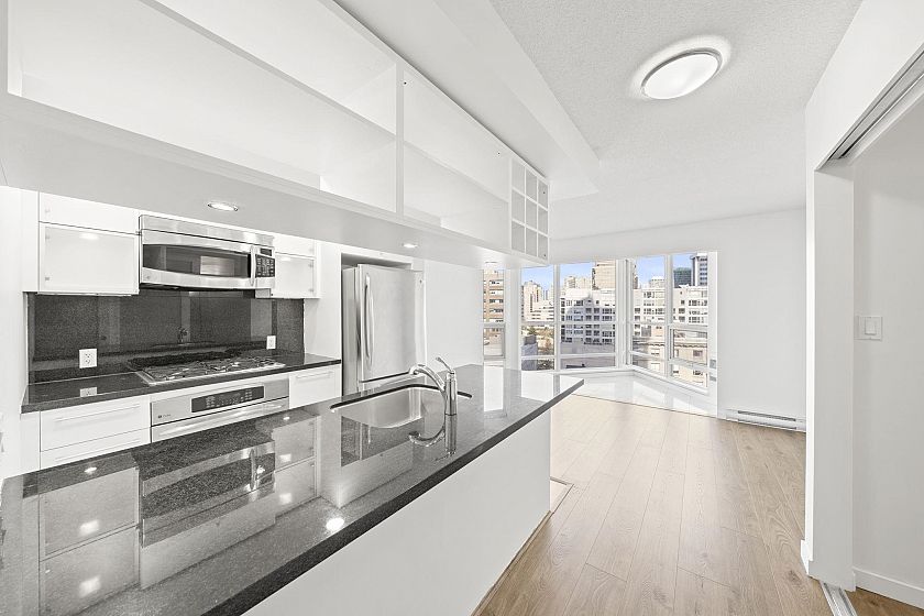 Stunning, bright 612sf 1 bed/1 bath at the desirable CAPITOL RESIDENCES. A thoughtfully designed open concept living space with large windows pulling in natural light and updated flooring. Kitchen features integrated s/s appliances, gas cooktop, quartz countertops & breakfast bar that flows into the spacious living area, perfect for entertaining. A versatile dining area with views as well as flex space perfect for a home office space. An unbeatable location steps offering concierge service, 4 high speed elevators, fitness room & rooftop courtyard w/social lounge. Location is amazing w/steps to restaurants, shops, cafes, bars & entertainment & all the city has to offer. Only 5 mins from 2 Skytrain Stations. Rentals & pets ok. OPEN HOUSE SAT APRIL 25TH 2:00PM-4:00PM.