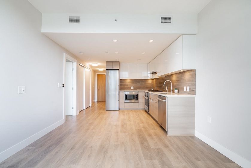 Bright, sunny, spacious 600SF 1 bed & den at Quartet right in the heart of River District. Nicely finished with Air Conditioning, quartz counters, stainless steel appliances, gas cooking, ensuite bath and covered relaxing balcony. 14,000SF Club Central resort style amenities include a study, party room, gym, pool, hot tub, sauna/steam room, racket sports court & basketball court, kids play area & more. Walk right out your door for shops, restaurants & cafe's. Comes with EV parking stall & locker.