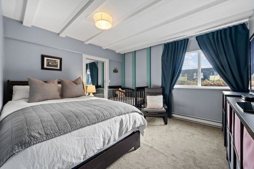Welcome to Wendral Court, a concrete boutique building in the heart of Lower Lonsdale. This SE-facing large 1 bdrm offers an open-concept layout with a sunken living and dining area, creating an airy, loft-inspired feel. Updates Inc-laminate flooring and a beautifully renovated bathroom. Step into your refined kitchen with quartz countertops and SS appliances, offering a practical space to cook and entertain. The spacious bdrm features a renovated custom walk-in closet. Enjoy morning light from the corner balcony, with views of D/T and Lions Gate Bridge. BRAND NEW balconies are underway and fully paid for by the seller. A move-in-ready home steps to the Shipyards, Lonsdale Quay, SeaBus, shops, & restaurants. In-Suite Laundry. Inc 1 parking & 1 storage. Pet friendly. Call to View.