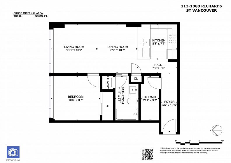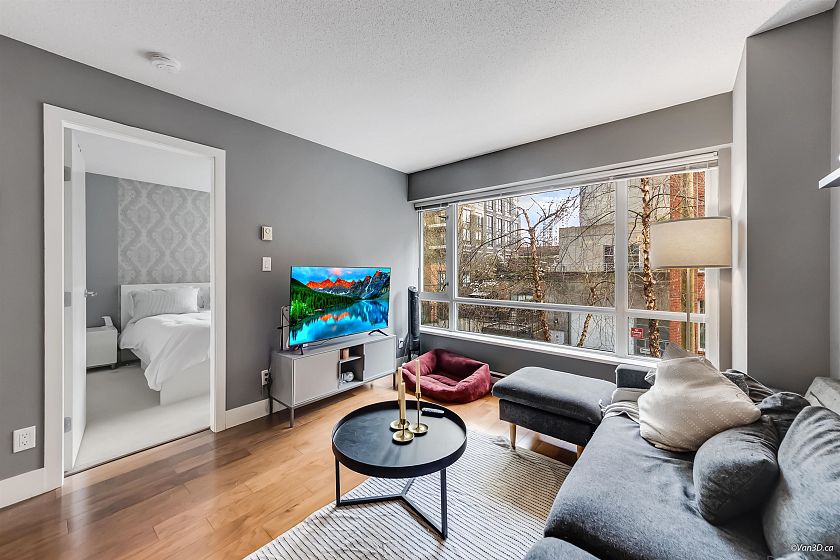 Welcome to Richards Living, one of Vancouver's contemporary buildings in the heart of Yaletown. This quiet 1 bedroom+den home features an open-concept layout with no wasted space, & large windows. The chef-inspired kitchen offers stainless steel appliances and granite countertops, with matching granite in the bathroom. The den is ideal for a home office or extra storage. Enjoy great amenities including a rooftop garden, gym, bike room, and visitor parking. Includes 1 parking & EV charging spots. Beautifully located on a quiet, residential block with no retail below, steps to restaurants, skytrain station, parks, shops, & the Seawall. One of Yaletown's most sought-after buildings with lowest strata fees compared to other buildings. Showings M-F 5pm onward, Weekends flexible w/ 24hr notice.