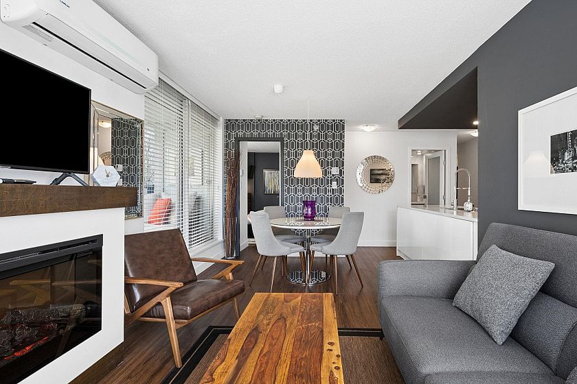 Situated in one of Yaletown’s most desirable developments, The Max is an exceptionally well run and sought after address. This rarely available one bedroom + den offers an ultra efficient 612 SQF floor plan with a stunning 2022 renovation and AIR CON to keep cool in the summers. This South-facing residence boasts an expansive 215 sqft of outdoor living & the home has been tastefully and thoughtfully updated with a new kitchen, bathroom, W/D, and custom cabinets, pantry and built-ins and screens. Built by Concord Pacific in a well maintained & problem-free building which features SPA LIKE amenities: 24 hr concierge, visitors parking, Club Max fitness gym, rooftop, decks, lap pool, sauna/steam room, movie room & much more. 1 Parking. 3 lockers. 3 Elevators. Showings by appointment.