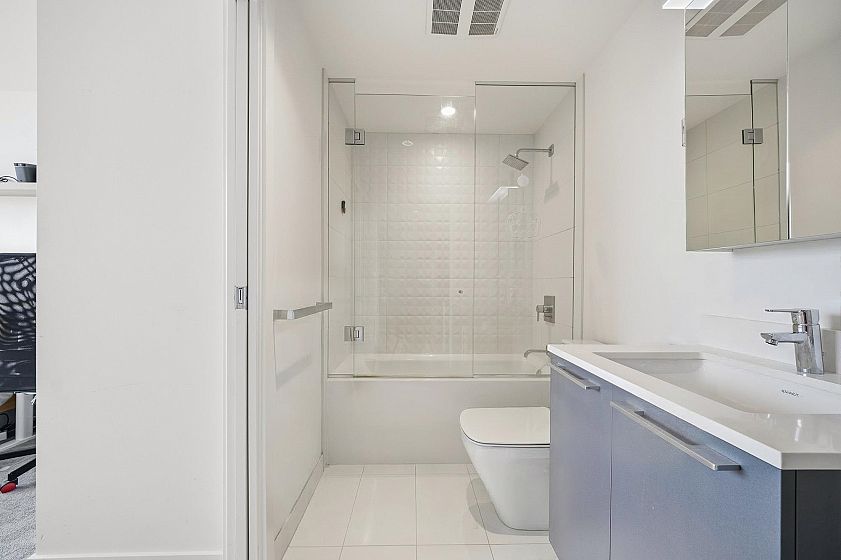 This bright and well-maintained 1 bedroom + den, 1 bathroom residence at Kensington Gardens by Westbank offers stunning panoramic views and modern comfort. Enjoy beautiful north-facing mountain views. The home features a thoughtfully designed open layout, including a contemporary kitchen with high-quality stainless steel appliances, gas cooktop, quartz countertops, and expansive floor-to-ceiling windows that fill the space with natural light. The versatile den is ideal for a home office or guest area, while the spacious balcony is perfect for relaxing and enjoying the scenery. Residents have access to excellent amenities, including a concierge, fitness centre, outdoor pool, hot tub, lounge, theatre room, study rooms. Located just steps from T&T Supermarket, Nanaimo SkyTrain, bank, shops