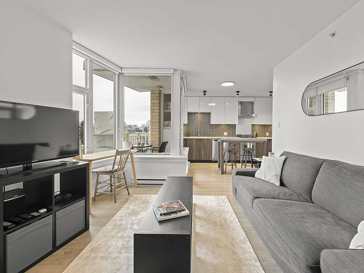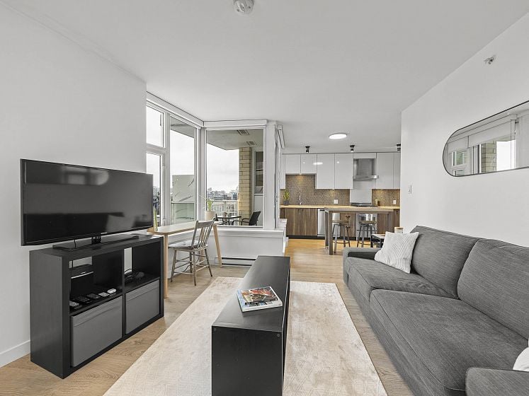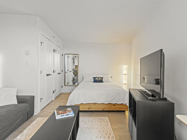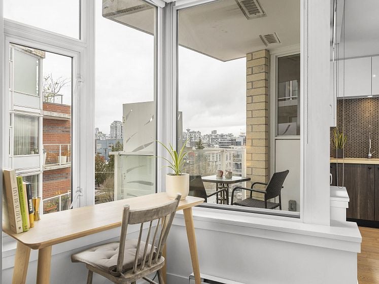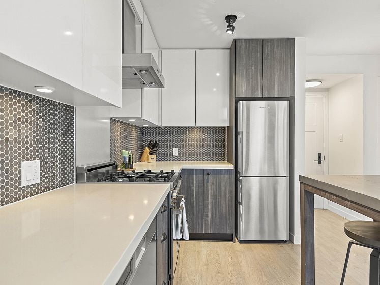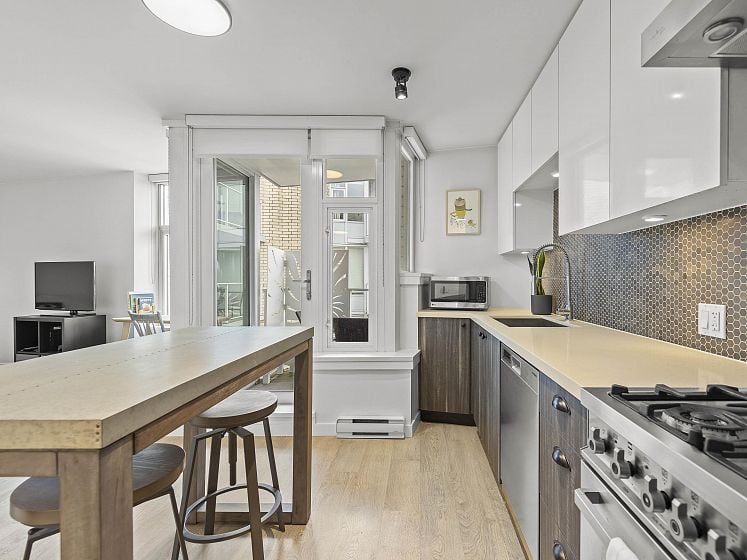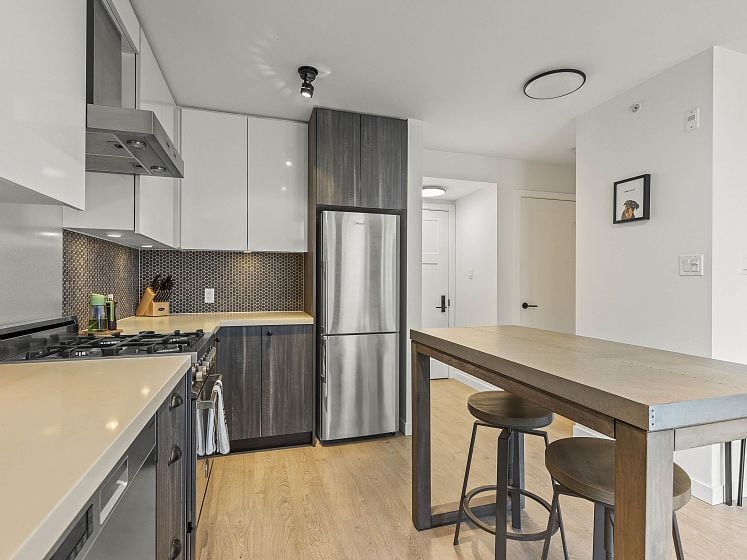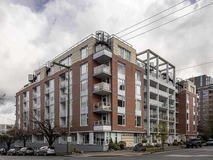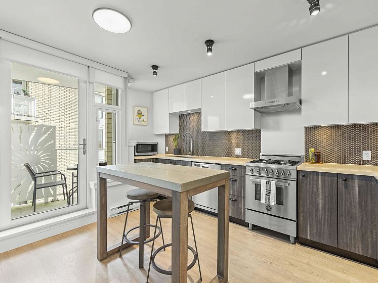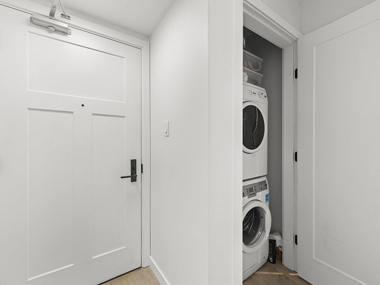 Do you want your first home to be cool, reliable, and in the heart of it all? Welcome to 502 @ Wohlsein. Near the top of this boutique concrete building, this home offers city & mountain views and THE most functional studio layout — with a sleeping area that feels separate, plus generous closet space. Industrial Port + Quarter interior features hexagonal tile, flat-panel cabinetry, and black hardware with premium Blomberg appliances and Bertazzoni gas stove. Enjoy the view behind a custom privacy screen, with roller blinds for the inside. The complete package, with in-suite laundry, EV parking, locker, gym, and workshop. Steps to Brassneck, Como, Zarak, Main Street SkyTrain (2027), and the Seawall. Design-forward living in one of Vancouver’s coolest neighbourhoods.