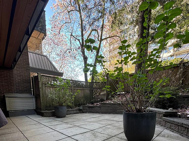 Beautifully renovated one of a kind 1 bedroom with an enormous garden patio facing north. Renovation in 2014 included new kitchen, bathroom, flooring, paint, mouldings, pantry, and smooth ceiling. Open kitchen with granite tops and movable island is great for entertaining! Enjoy summer barbecuing on the over 300 sq ft private landscaped patio. 1 parking stall and storage locker included. Prime Kitsilano location north of 4th , close to Kits Beach and just steps to shopping and restaurants on 4th Ave. Close to bus and Kits Community Centre. Short 5 minute drive to downtown Vancouver.