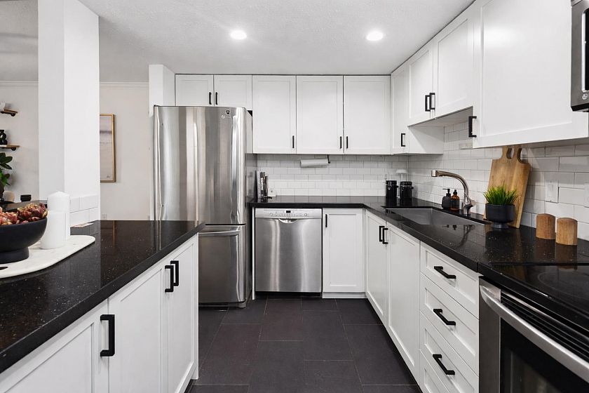 Welcome to this charming 1 bed+1 bath 772 sqft home in the heart of Lower Lonsdale. Perfect for entertaining, this spacious corner unit offers an exceptional layout w updated flooring, kitchen & bathroom. The expansive living room is anchored by a cozy gas fireplace. Large windows flood the home w natural light enhancing the airy feel of the generous floor plan which easily accommodates a full dining area & large living room furniture. Thoughtful details include a large pantry w in-suite laundry & mudroom-style entry for coats/storage. The oversized primary bedroom has ample room for a king sized bed & additional furniture w custom built-ins throughout. Dreamy location - just steps to the Shipyards, Seabus, restaurants, & fitness boutiques. Parking &storage included.Pets & rentals welcome.