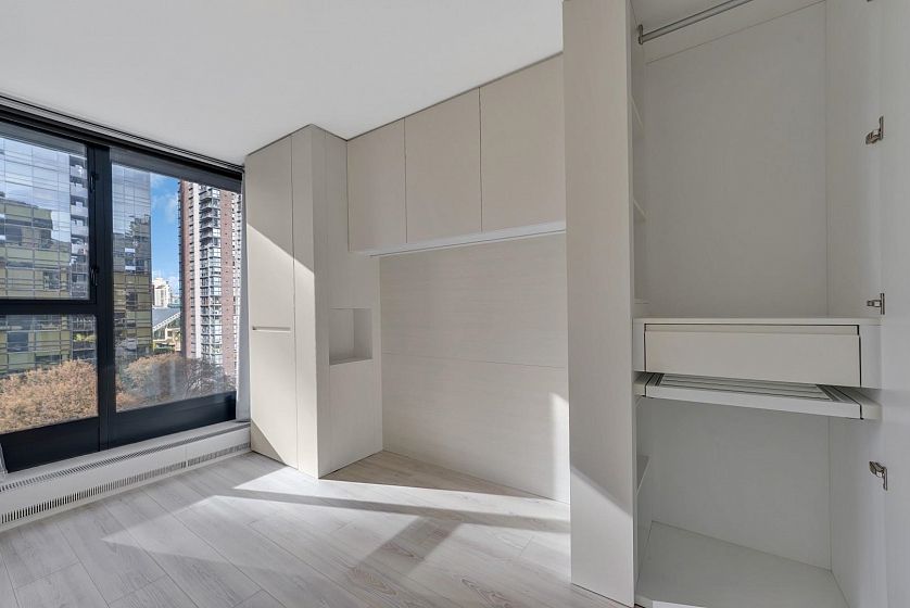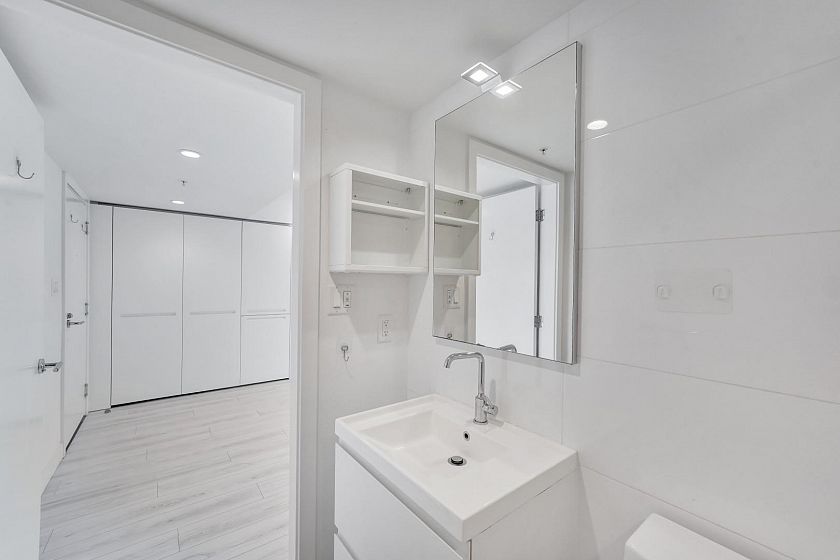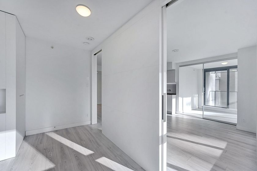 Welcome to Addition by Kenstone Properties. This thoughtfully designed 1 bedroom + den + flex suite showcases a clean, modern all-white interior with high-end finishes throughout. The kitchen is equipped with premium stainless steel appliances from Liebherr and Porter & Charles, complemented by custom Italian cabinetry by Friul Intagli. Enjoy brushed ash laminate flooring with thermo-acoustic underlay in the living areas, along with an efficient heating and cooling system by Clima Canal for year-round comfort. The home also includes 1 parking, 1 storage locker, and access to a secure bike room. Fitness centre, outdoor lounge with BBQ area, fireplace, children's play area & garden plots. Central location, entertainment and business hubs.