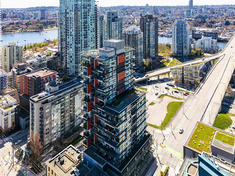 Welcome to this charming WATER VIEW, SOUTH EAST facing one bedroom plus flex at The Rolston! Love the efficient floor plan with built-in closets, shelving, hardwood floors, full size appliances including new front load washer/dryer & fridge, quartz counter tops plus ample kitchen cabinetry. The living/dining & bedroom area are open & bright looking towards the water ways of False Creek. Covered BBQ balcony completes this functional floor plan. Amenities include a well equipped gym, library, kitchenette, concierge service, plus 2 outdoor spaces. The massive roof top terrace features community garden plots, BBQ, tables & chairs plus amazing views of False Creek, the NS Mtns & Downtown! Close to every convenience. One underground parking included. OPEN SAT, APR 18TH 12:30-2PM.