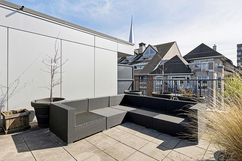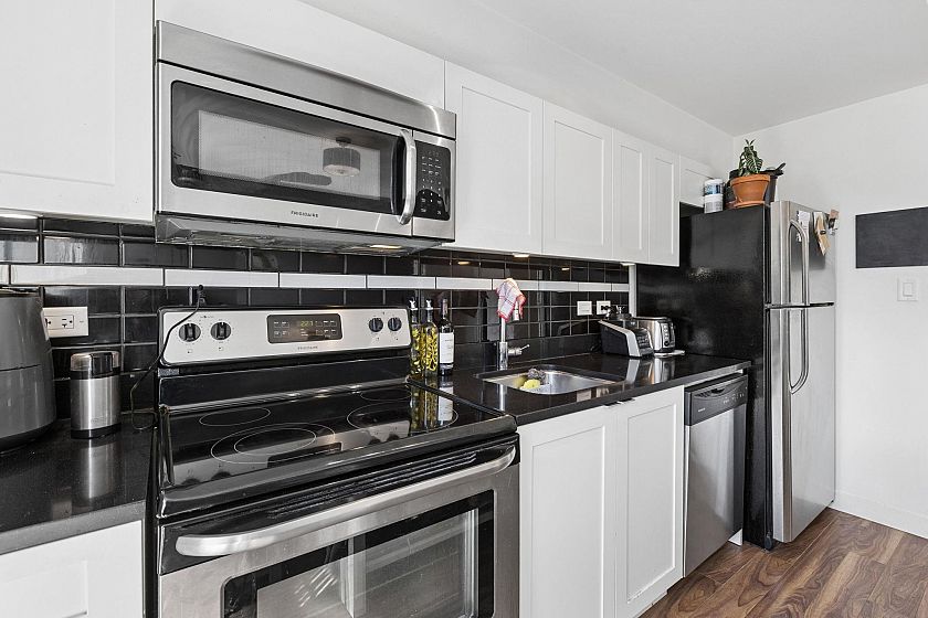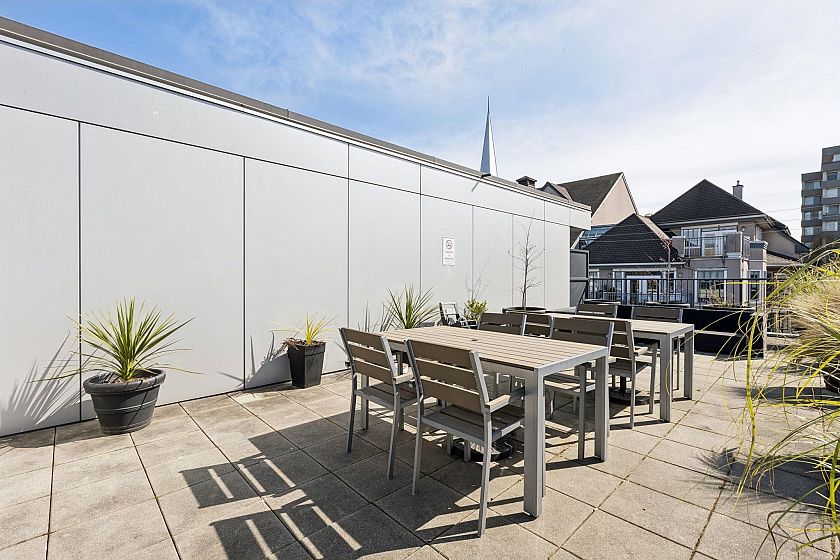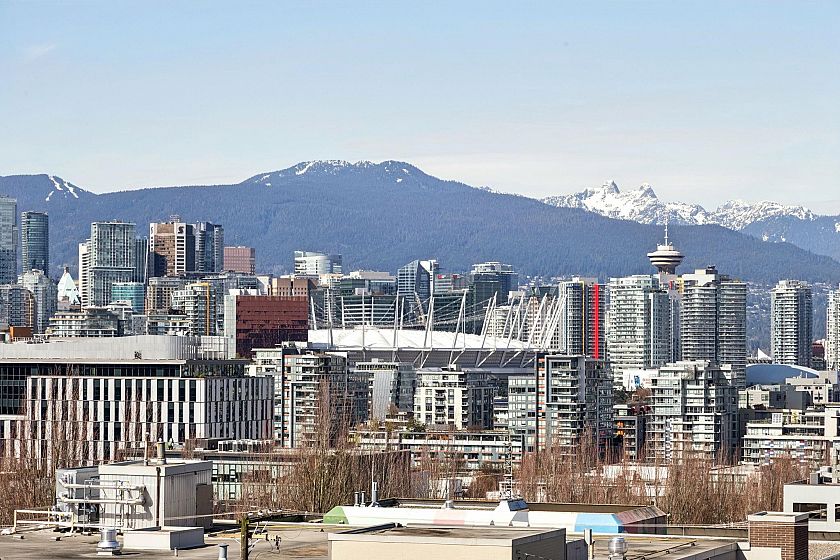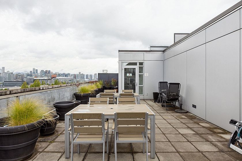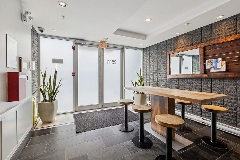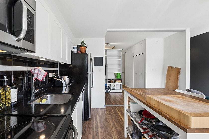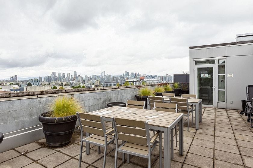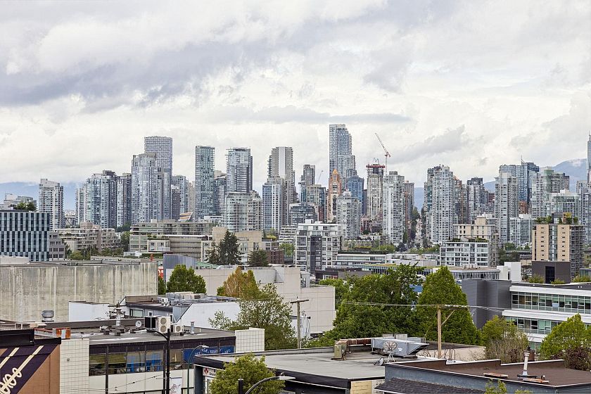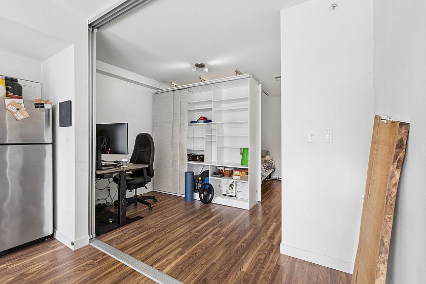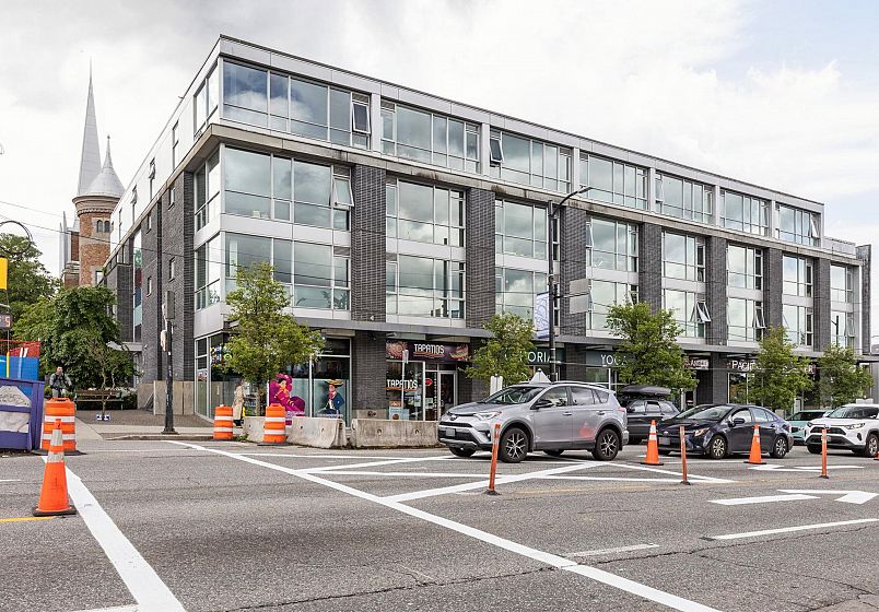 Upper-floor end unit in the boutique OnQue building, just steps from Main & Broadway and the new SkyTrain. Bright and airy with over-height 8'8" ceilings and a south-facing patio, this one-bed + den offers something truly rare, a moveable storage divider that lets you reconfigure the floor plan entirely. Set up one open bedroom, two separate sleeping spaces, or a live-work layout. The possibilities move with you. Stylish finishes throughout with stainless steel appliances, quartz countertops, walnut laminate flooring and a black backsplash. Being an end unit means more quiet, and a sense of space that's hard to find at this price point. Step next door to the shared sunny rooftop deck and take in sweeping views of the downtown skyline and North Shore mountains. Showings by appointment.