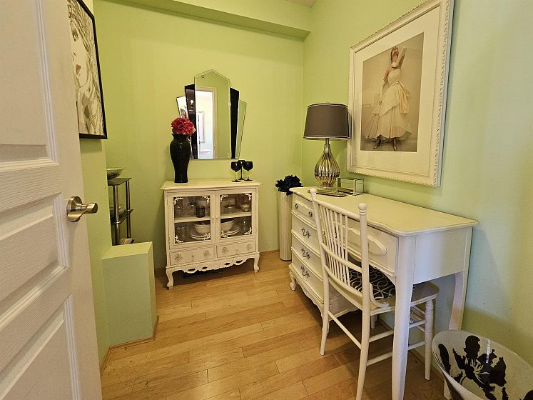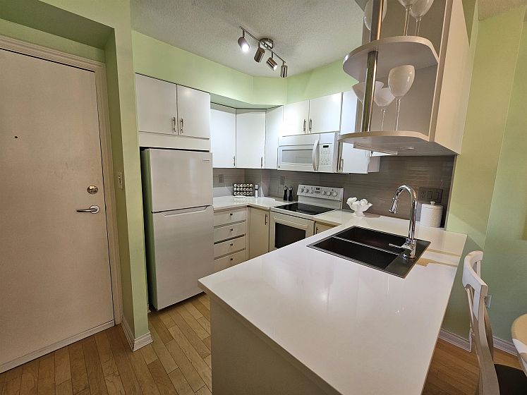Corner unit perfection on the 10th floor with sweeping open views! This sun-soaked home features a renovated kitchen, a spacious bedroom, and a versatile den ideal for work or study. Step out onto your private patio and soak in the cityscape, then enjoy building amenities like a gym, hot tub, party room, and guest suite. With secure parking and a prime location just steps from shops, dining, transit, and parks, this condo blends style, convenience, and modern living—ready for you to move in and make it yours.