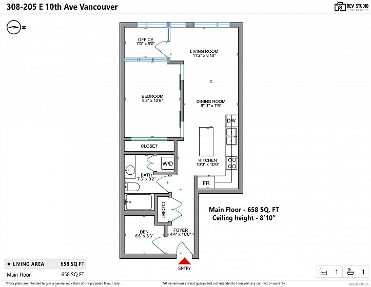 Welcome to The Hub a well-maintained boutique building just off vibrant Main Street, steps to cafés, restaurants, shops & transit in one of Vancouver’s most desirable neighbourhoods. This functional 1 Bed + Den + Office home features a bright open-concept living & dining area, flowing seamlessly into a well-appointed kitchen with ample storage & a moveable island. Enjoy quiet east-facing exposure with beautiful morning light throughout. The spacious bedroom is complemented by a separate office/flex room & additional den ideal for working from home, extra storage, or added flexibility rarely found in this size. Residents enjoy a stunning rooftop patio with city & mountain views, perfect for relaxing or entertaining. 1 Parking included. This is a fantastic opportunity you don't want to miss.