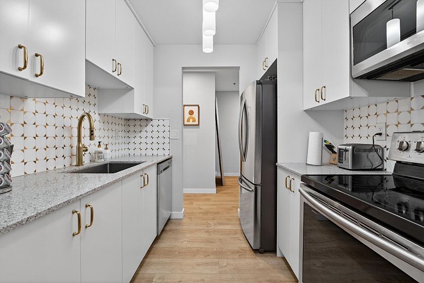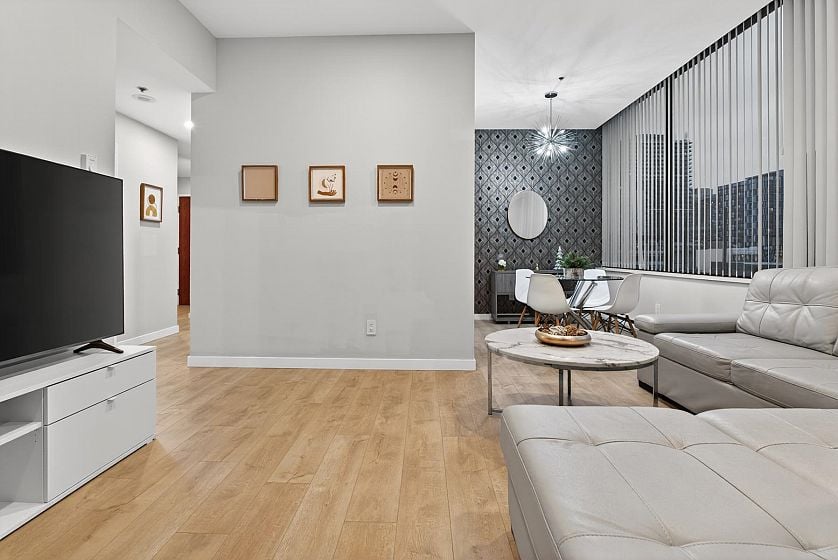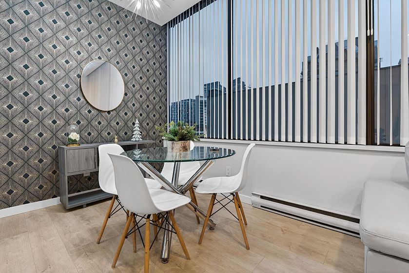 Bright corner 1-bedroom home featuring over-height ceilings and wall-to-wall windows that fill the space with natural light. Recently updated with new flooring throughout and offered fully furnished for a true turn-key opportunity. Efficient layout makes the home feel open and spacious year-round. Located in Downtown Vancouver’s Fortune House, steps to Robson & Alberni shopping, Yaletown dining, and SkyTrain access. Well-maintained building in a prime central location. No rental restrictions and Airbnb allowed—a rare find - where you can live and earn. Ideal first home, pied-à-terre, or investment property.