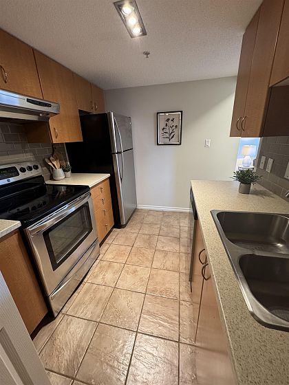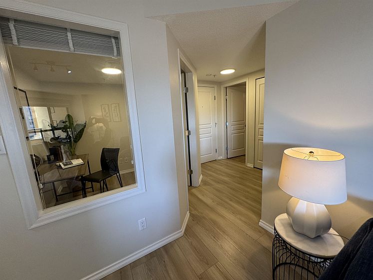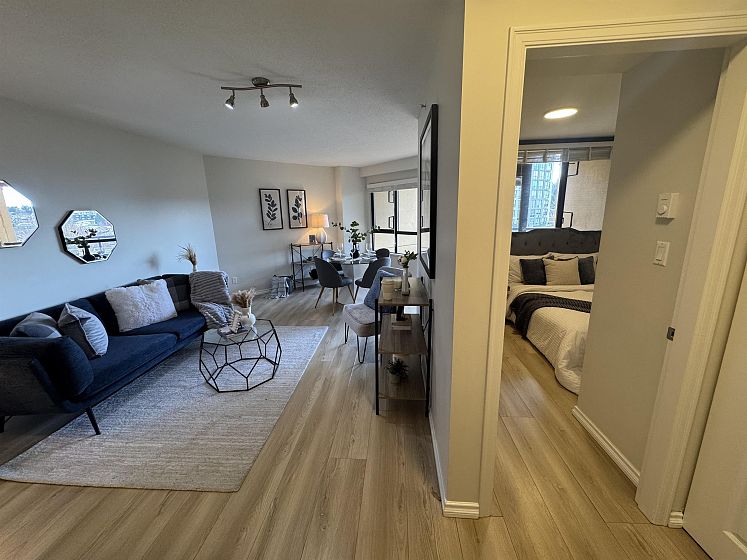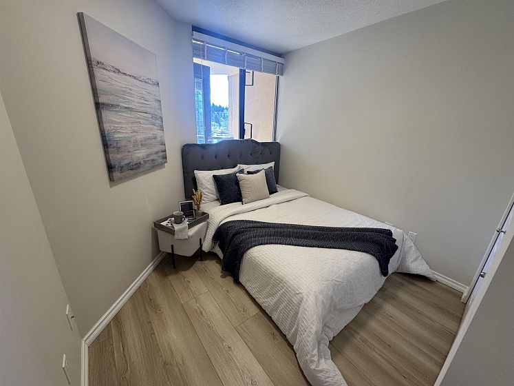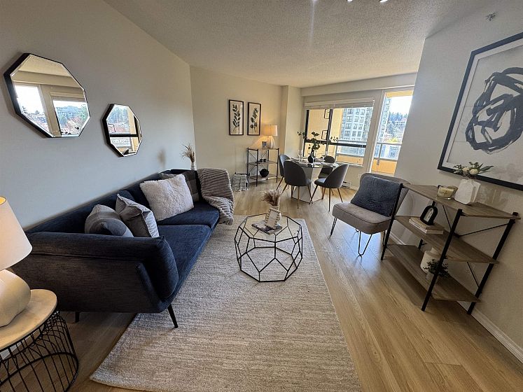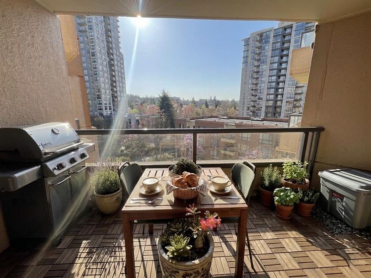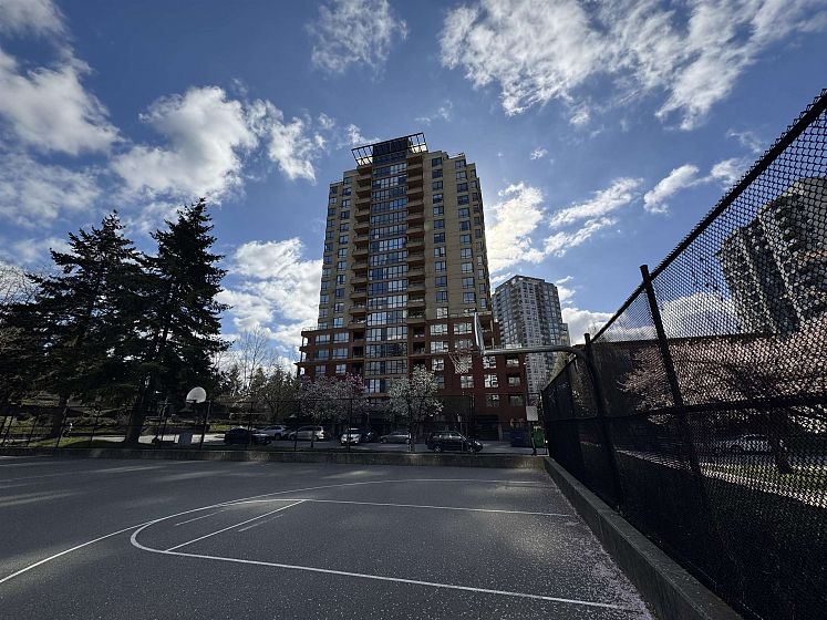 Welcome to EMERALD PARK PLACE! This immaculate 675 SQFT home offers a fabulous layout and value, featuring a spacious living & dining area and a versatile DEN, perfect for a HOME OFFICE or as a JUNIOR BEDROOM. Updated hardwood floors, the open-concept layout includes a kitchen with large adjoining pantry. Enjoy your private outdoor living on your quiet 81 SQFT private patio with Southeast exposure. This well-managed concrete high-rise boasts a $1M+ CRF, pro-active council, & fitness centre. Emerald Park Place offers an EXCEPTIONALLY CENTRAL location in the heart of Collingwood, just steps from parks, tennis courts, & Central Valley Greenway bike path, and quick access to Joyce Skytrain Stn, Central Park, Metrotown, shopping & more! Includes1 parking.