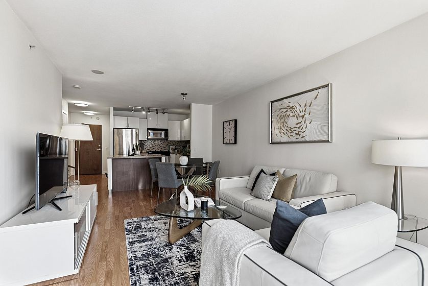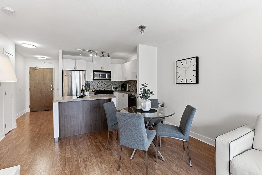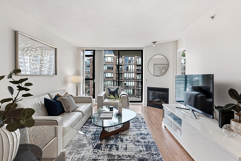 The kind of home that just works—open, functional, and easy to live in, whether you’re starting your morning or winding down in the evening. From the moment you walk in, the space is intuitive, with the kitchen & island at the centre, flowing into the living area and anchored by a gas fireplace. Step out to the large covered balcony and take in the mountain views. A dedicated office gives separation when you need it, while a flexible space keeps storage organized and out of sight. A tastefully updated bathroom and in-suite laundry add everyday comfort and convenience. Positioned on the 11th floor of the TIME building, a concrete, pet-friendly residence with secure parking and storage. Steps to the Shipyards, Lonsdale Quay, cafés, shops, and the Spirit Trail in the heart of Lower Lonsdale.